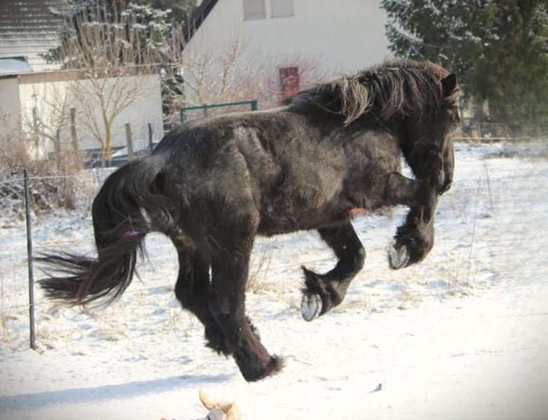 Jan est un jeune cheval intelligent et sensible, qui aborde son humain avec attention. Au début, il peut être prudent, mais il apprécie une approche douce et calme, recherchant alors doucement la proximité de son cavalier. Sous pression excessive, il préfère s’éloigner. En revanche, avec un travail posé, il se montre motivé et très apprenant. Ce hongre est travaillé en fonction de son âge. Il connaît les balades en terrain varié (même seul), se laisse bien charger en camion, est longeé, et a déjà découvert la méthode de la Dual Activation en longe ainsi que quelques premiers tours de cirque. Il donne volontiers des bisous. Jan se distingue par sa robe rare. Il est un Blue Roan (également appelé « Rappschimmel ») et change de couleur selon les saisons. En hiver, il paraît presque noir, tandis qu’en été, son cou et son corps prennent une teinte grise. La mère de Jan est une ponette de dressage performante, qui participe à des concours de dressage aux Pays-Bas. Elle a déjà obtenu des victoires et des classements jusqu’à la catégorie M2, et a été championne toutes disciplines à l’échelle nationale. Les descendants de la mère ont également connu du succès sportif. Le père est Tejo van het Hermeshof, un représentant typique de sa race (plus d’informations sur le père : https://www.hermeshof.be/en/tejo/). Vacciné, vermifugé. Les dents ont été traitées (les dents de loup ont été extraites), et il a également bénéficié d’un traitement ostéopathique.
