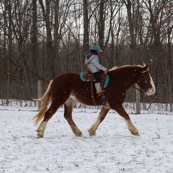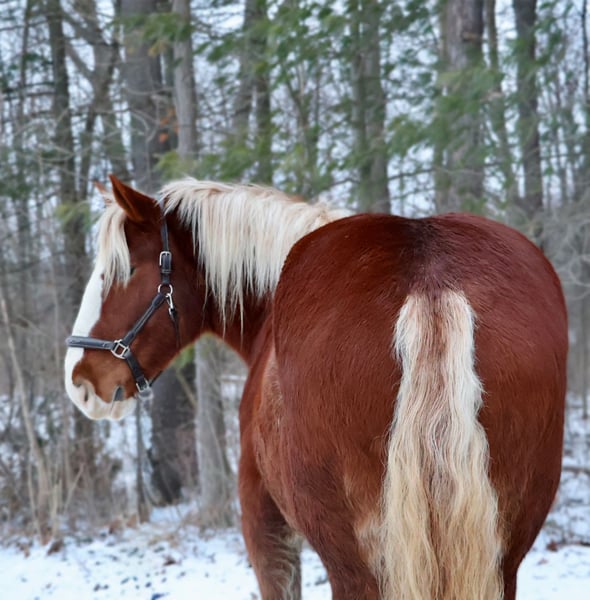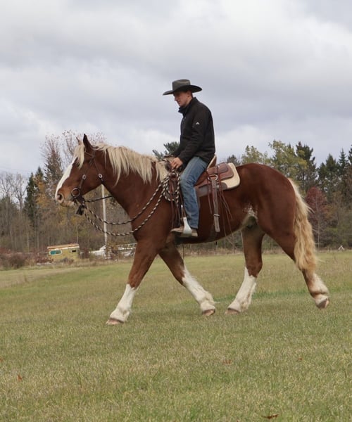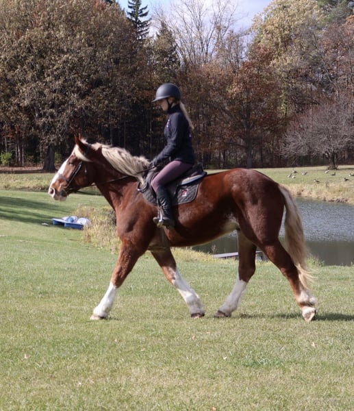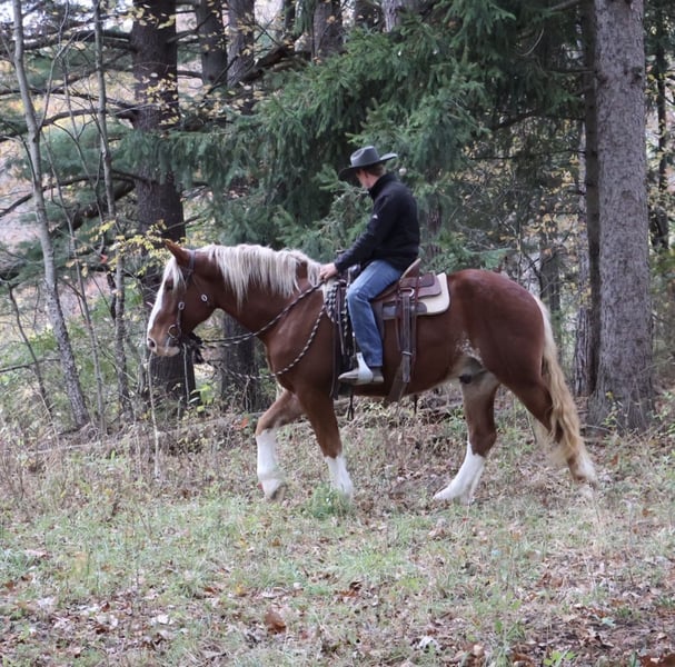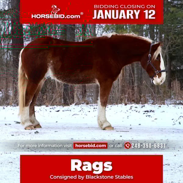 ♦️𝐍𝐄𝐖 𝐘𝐄𝐀𝐑'𝐒 𝑬𝒙𝒕𝒓𝒂𝒗𝒂𝒈𝒂𝒏𝒛𝒂♦️ Happening now thru MONDAY | JANUARY 12th - Available EXCLUSIVELY on HorseBid's website! For more details and to register visit: www.Horsebid.com CONSIGNOR CONTACT: Blackstone Stables 248-390-6831 LOCATION: Howell, MI BREED: Belgian Cross REGISTERED: No REGISTERED NAME: Rags COLOR: Chestnut HEIGHT: 16.2 AGE: 5 GENDER: Gelding I am proud to introduce you to Rags! He’s something special, something unique and something with a huge heart. Rags has the appearance of a teddy bear with eyes that bring comfort with a glance. Rags stands 16.2hh at 5 years old. He’s a stunning light chesthnut with lots of chrome and a stunning flaxen mane and tail. Rags is a very substantial guy. He has great conformation, solid bone structure, excellent hooves and he’s well muscled. Rags is loaded with personality. He gets along with most everything in the pasture from the cows to the donkeys; he’s everyone’s best friend. He can live in or out and is content either way. He loves people and attention. Kids as young as 5 can ride him independently. Rags stands like a rock for grooming tacking and mounting. Under-saddle he comes equipped with 3 stellar gaits, a quiet walk, a floaty trot and the most comfortable canter around. His gaits are all very adjustable. He works off of your seat and leg very well. Rags has been exposed to all types of obstacles such as balls, tarps, pool noodles, bridges and pedestals. He works off leg and seat so well you can pull the bridle and just clip a lead rope to the halter. Rags is more whoa than go. Once you climb on his back this is the horse that will make you want to ride! He’s seen the mountains, open fields, roads, water and woods. He’s been out on several hunter paces. Rags has been camping and picketed and is always game for an adventure. Rags also loves to drive! He’s pulled a carriage in weddings, parades and just around the farm! This boy has great color, excellent conformation, excellent training, loads of experience and a mind to match! He lives in Howell, MI 48855. Call or text Ellesse Schwartz at 248-390-6831 for more information.