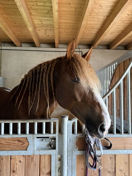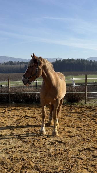 ✨sportlicher und pfiffiger Kaltblut Wallach✨ Pagro ist ein Pferd mit Charakter, er lernt gerne und versucht immer sein bestes zu geben. Hard Facts: - 8 Jahre - 173 cm groß - 720 kg schwer - regelmäßig entwurmt und geimpft - aktuell 4 Hufeisen - Er ist seit Anfang Oktober aktiv unter dem Sattel. Aufgrund einer Arbeitsumstellung gebe ich ihn schweren Herzens ab. Er kennt keine Unarten! Er ist ein sehr Herden verträgliches Pferd, momentan steht er in Offenstall Haltung, kennt aber auch Boxenhaltung. Schmiede und Verladefromm! Bei Interesse gerne melden!
