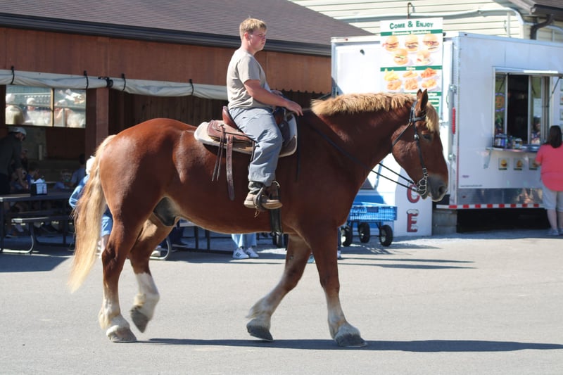 ♦️ 𝐭𝐡𝐞 𝐀𝐌𝐄𝐑𝐈𝐂𝐀𝐍 𝓕𝓪𝓵𝓵 𝓒𝓵𝓪𝓼𝓼𝓲𝓬 ♦️ Happening now thru MONDAY | OCTOBER 20th - Available EXCLUSIVELY on HorseBid's website! For more details and to register visit: www.Horsebid.com CONSIGNOR CONTACT: Hershberger's Farm 330-600-0197 LOCATION: Millersburg, OH BREED: Belgian REGISTERED: No COLOR: Sorrel HEIGHT: 17.3 AGE: 8 GENDER: Gelding Hershey's George is an 8 year old Belgian gelding. Here is an absolute GENTLE GIANT!! He has been here on the farm giving rides from our merry go round to giving carriage rides on the busy highway. George is good for any level rider driver and is 100% BEGINNER SAFE!!! If you are looking for a big baby that loves attention George would be a great fit. He has been on lots of trail rides and loves to go through water. George will get up and trot and canter if you ask him to but he is defenately more whoa then go and would much rather just walk along at his leisure pace. George also likes to get a bath and stands nice for the fairrer and to clip. He gets along great with other horses. Every evening George goes out to pasture then in the morning he comes to the barn and is ready for another day. Twice a day morning and evening he gets 2 quarts of grain of the 12% horse feed. And free choice hay either first cutting or a soft grass hay. If your looking for a slow steady easy going personality, look no further. To learn more about George call or text 330-600-0197.