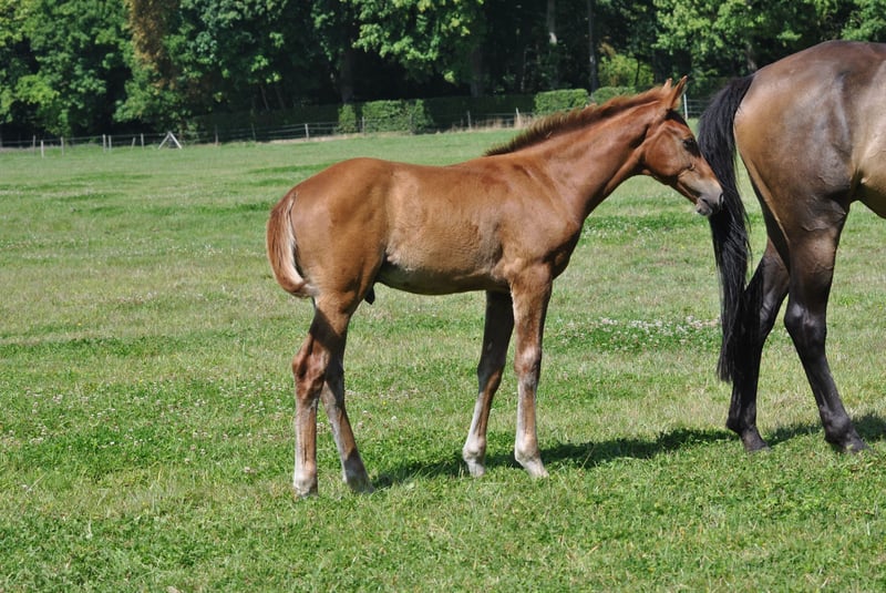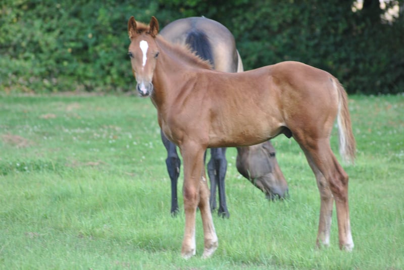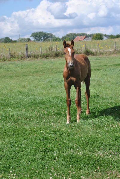 https://esha.horse/Auctions/Item/5535 Zeer elegante voshengst van El Barone 111, uit Vitamine d’Elifine Z (CSI 1.40m). Cristobald d’Elifine is het tweede veulen van Vitamine d’Elifine Z. Haar eerste nakomeling, C’Insegotte d’Elifine Z (Cicero van Paemel), is 5 jaar oud en toont al veel aanleg voor het springen op de Franse concoursvelden. In 2025 behaalde hij al meer dan €750 prijzengeld, met 8 overwinningen in 16 starts in de 5-jarigenrubrieken. Very elegant chestnut colt by El Barone 111, out of Vitamine d’Elifine Z (CSI 1.40m). Cristobald d’Elifine is the second offspring of Vitamine d’Elifine Z. Her first foal, C’Insegotte d’Elifine Z (Cicero van Paemel), is 5 years old and is already showing great talent for show jumping on the French circuit. In 2025, he earned over €750 in prize money, achieving 8 wins out of 16 starts in the 5-year-old classes. Poulain alezan mâle très élégant par El Barone 111, fils de Vitamine d'Elifine Z (CSI 140). Cristobald d'Elifine est le deuxième produit de Vitamine d'Elifine Z. Son premier produit, C'Insegotte d'Elifine Z (Cicero van Paemel), a 5 ans et montre de très belles aptitudes au saut d'obstacle sur les pistes de concours en France. Il a notamment déjà engrangé plus de 750€ de gains sur l'année 2025 en cumulant 8 victoires sur 16 participations dans le épreuves de chevaux de 5 ans. Sehr elegantes Fuchshengstfohlen von El Barone 111, aus Vitamine d’Elifine Z (CSI 1.40m). Cristobald d’Elifine ist das zweite Fohlen von Vitamine d’Elifine Z. Ihr erstes Fohlen, C’Insegotte d’Elifine Z (Cicero van Paemel), ist 5 Jahre alt und zeigt bereits großes Springtalent auf den Turnierplätzen in Frankreich. Im Jahr 2025 gewann er über 750 € Preisgeld mit 8 Siegen aus 16 Starts in den Prüfungen für 5-Jährige.