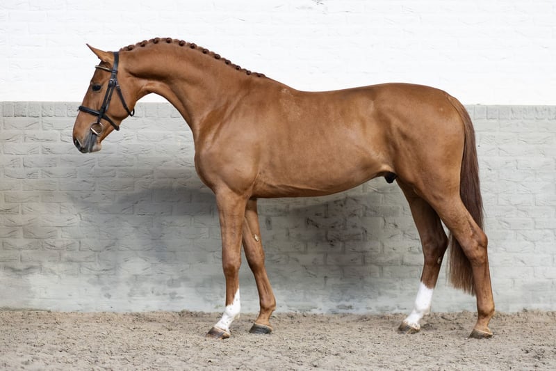 This jumping talent is sired by the international 1.50m-level competing stallion Mandoro P, a son of top sire Emerald competing under the Spanish flag, who has produced a limited number of offspring. Dam Penny van de Noordheuvel is a half-sister to five international showjumpers, including the 1.45m-level performer Geronimo TN (s.Zacharov TN) ridden by Adrian Whiteway and Ruben Lamers’ eight-year-old 1.40m horse Samira van de Noordheuvel (s.Chapeau TN). This originally Hanoverian damline continues with granddam Cracia, who is herself a half-sister to both the international 1.55m-level showjumper Holland TN (s.Q.Breitling LS) ridden by Jiri Skrivan and the 1.45m level jumping horse RSH Edwina (s.Padock du Plessis).