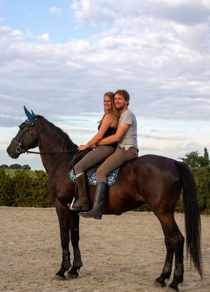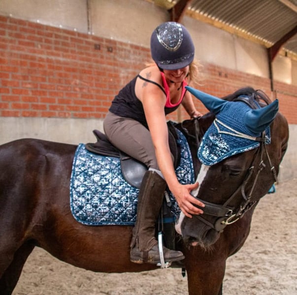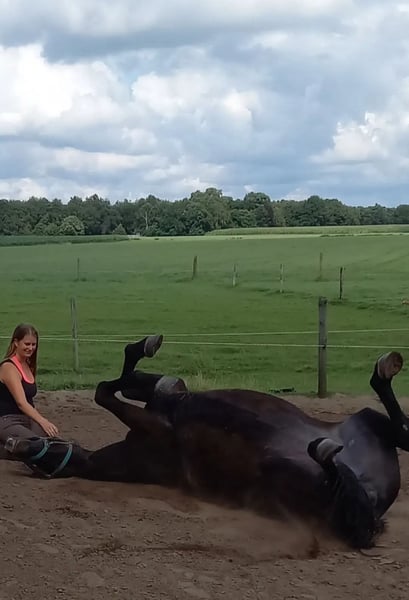 Dissandra is een indrukwekkend groot en mooi paard. In haar jongste jaren reed ze prix st george. Ze heeft dus dressuurknopjes. Hulpen vragen is mm-werk. Toch heeft ze springbloed en springt ze ontzettend graag. Dissandra heeft haar hoogtepunt al bereikt, maar loopt nog over van energie om te willen werken, springen, wandelen of rennen in het bos, liefst in alle gangen. Daarnaast mag ik zo lang en intens knuffelen met haar als nodig is. Ze houdt van gekriebeld en gemasseerd te worden. Ze reageert heel fijn op grondwerk. Ze is heel zorgzaam en beschermend in de kudde. Een veulen in de buurt? Dan ontfermt ze zich erover. Wegens een verhuis, kunnen wij de paarden niet meer houden.