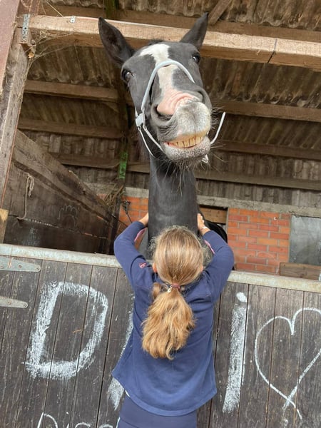 Dissandra is an impressive, large, and beautiful mare. In her younger years, she competed in Prix St. Georges. She has excellent dressage buttons and responds well to aids, making her suitable for medium-level work. Nevertheless, she also has a strong jumping bloodline and loves to jump very much. While she has already reached her peak in her dressage career, she still brims with energy and enthusiasm for working, jumping, walking, or running in the forest—preferably in all gaits. Additionally, I can cuddle her for as long and as intensively as needed. She enjoys being scratched and massaged and responds very well to groundwork. She is very caring and protective within her herd. If there is a foal nearby, she takes good care of it. Due to a move, we are no longer able to keep the horses.