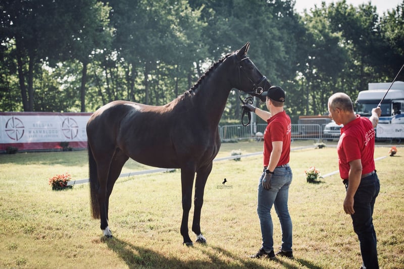 Elegant Belgian Warmblood Mare – 2017, Black, 173 cm We are pleased to offer this stunning Belgian Warmblood mare (Don Nobless x Donnerhall x Rubinstein), born in 2017. Standing at a impressive 173 cm, she combines size, presence, and athleticism, making her an excellent choice for breeding. She's pictured here as a 4 year old. Her striking black coat and noble appearance are complemented by her excellent conformation. . This mare was ridden as a young horse and used as a breeding mare afterwards. She produced two healthy strong and big foals. She has a calm, willing temperament. She's offered for sale because we want to downsize our breeding program.