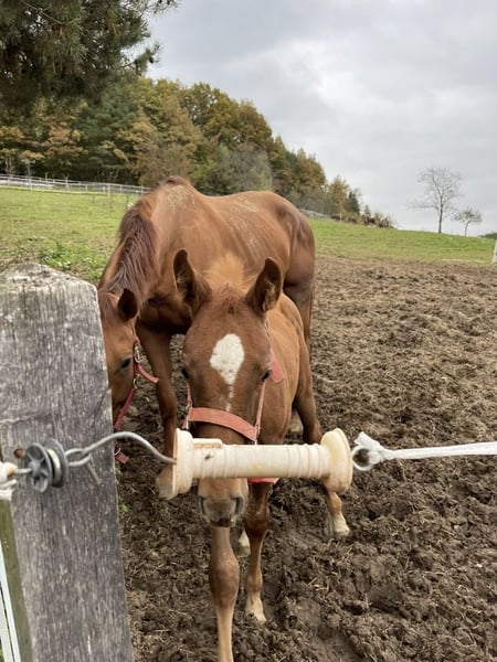 This stunning 2017-born mare is offered exclusively as a breeding prospect due to an old injury that prevents her from competing in show jumping. However, what she may lack in competition ability, she more than makes up for in genetics, temperament, and maternal quality. Already a proud and attentive dam to a healthy 1-year-old filly, she has proven herself to be fertile and easy to manage as a broodmare. Her foal showcases excellent conformation and character—clearly reflecting the outstanding lineage. Descendant of the legendary Diamant de Semilly, a cornerstone of modern show jumping breeding, known for passing on exceptional athleticism, rideability, and scope. This mare is a wonderful opportunity for any breeding program with world-class genetics. Ideal for breeders seeking to produce quality sport horses with proven bloodlines. Red One is rideable for a more experienced rider.