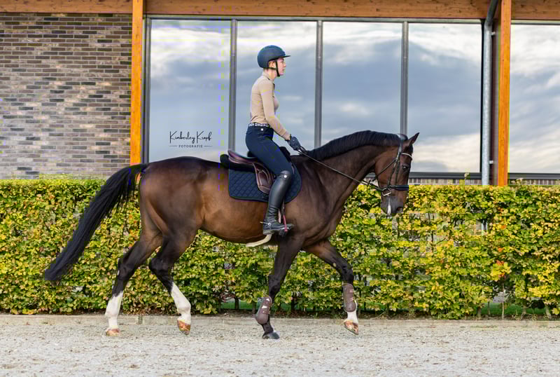 Komplex van de Beuzerik (Othello) is een 15-jarige ruin van Caruso x Heartbreaker met veel ervaring en een eerlijk karakter. Een paard dat je vertrouwen geeft in het parcours en plezier houdt in zijn werk. Othello heeft in het verleden 1.35 – 1.45 gesprongen en loopt momenteel 1.10 parcoursen. Hij beschikt over voldoende vermogen, is makkelijk te schakelen en prettig te rijden. In het parcours is hij niet kijkerig, denkt mee en heeft fijne ‘go’ zonder heet te worden. In de omgang is Othello lief, nieuwsgierig en werkwillig. Hij is braaf op vreemd terrein, gaat makkelijk op de trailer en is ook fijn buiten te rijden. Samen hebben wij de instructeursopleiding wedstrijdsport gevolgd aan Aeres, waardoor hij allround is opgeleid. Naast het springen is hij ook in de dressuur uitgebracht en heeft hij een winstpunt in het M2 behaald. In 2021 is hij klinisch en röntgenologisch goedgekeurd. Hij is altijd netjes bijgehouden door tandarts en osteopaat. Othello is energiek, fit en heeft zichtbaar plezier in zijn werk. Dit maakt Othello geschikt als schoolmaster en als ideaal paard voor de overgang van pony naar paard. Hij is een eerlijk en ervaren paard dat vertrouwen geeft aan ruiters die het springen nog moeten leren, maar ook voldoende kwaliteit en ervaring heeft voor ruiters die al kunnen springen en zich verder willen ontwikkelen naar een hoger niveau. Othello gaat alleen weg bij de juiste match en een 5* huisje. Vraagprijs: €14.500 (bespreekbaar bij de juiste match). Bij serieuze interesse graag contact opnemen via WhatsApp: 06-53404039 Video’s, extra foto’s of verdere informatie zijn op aanvraag beschikbaar.