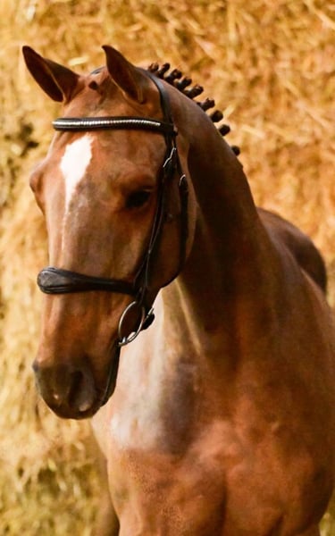Top Youngster (4 years old) of exceptional quality for sale. Vic is an outstanding horse and impresses with his remarkable jumping ability, which he demonstrates with great control. He has completed his first competitions without any faults. He is perfectly rideable in dressage and performs flying changes. Trail riding, loading into the trailer, and farrier visits are no problem.