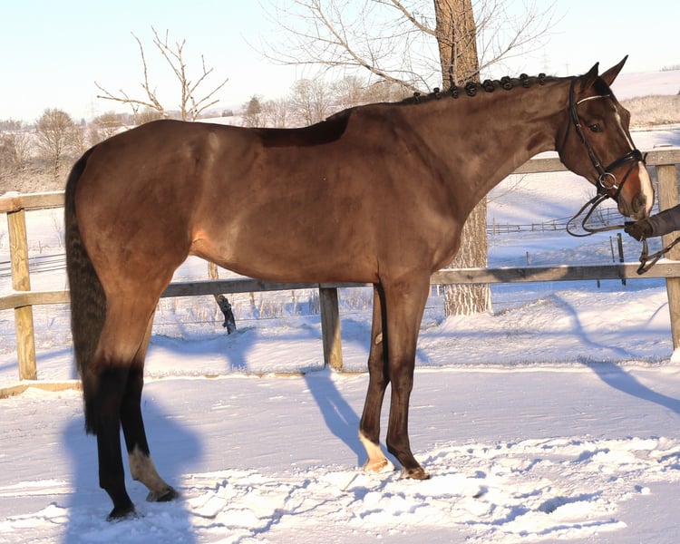 This stunning 7-year-old gelding from an excellent dam line (the dam has already produced four offspring competing in the advanced class) is ready to compete immediately in show jumping and would surely impress in a Youngster S class this season! He is not only very well-trained and easy to ride but also jumps very confidently—careful, with excellent technique and top reliability! An ideal sport partner for riders with higher ambitions. He is also perfectly suitable for junior riders. A recent full health certificate (AKU) is available!