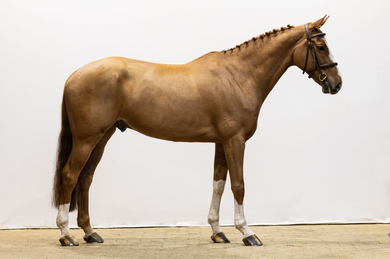 Rush de la Linière is a gelding who will turn nine years old in 2026 and has already clearly proven himself in sport. He has competed at 1.40m level and has extensive experience at 1.35m. He is a sharp, very careful horse with the ability to create scope easily over the jump. Light-footed, quick off the ground and always wanting to get to the other side. This is not a horse for a beginner amateur. Rush de la Linière is best suited for an advanced amateur, an experienced junior/young rider, or a professional rider. He is alert, sharp and competitive, and requires a rider who matches that mindset. When you find the right buttons, you get a horse that wants to win, attacks the fences and delivers a lot of enjoyment in the ring. Sire Nesquick de la Linière (Quidam de Revel II Z) competed at 1.40m level and carries the influential blood of Quidam de Revel, one of the most important sires in international showjumping. This sire line is known for reflexes, mentality and competitiveness. Dam Eefke van ’t Zoggehof (Golden Hawk) competed herself at 1.40m level and comes from an exceptionally strong performance family. From this direct damline come multiple horses competing at 1.40m to 1.60m level, including: Evita van ’t Zoggehof (1.60m, CSI5*) Jolie van ’t Zoggehof (1.45m) Punch van ’t Zoggehof (1.40m) Lionel van Equinta (1.45m, BWP-approved stallion) Second dam Anaïs Anaïs de Muze (Rubens du Ri d’Asse) competed at 1.50m level and is a key mare within the renowned de Muze and Châlus damlines. This family has produced numerous international showjumpers and multiple approved stallions at 1.50m–1.60m level. The further damline through Fragance de Chalus (Jalisco B) belongs to the absolute elite of showjumping breeding worldwide, producing an exceptional number of horses competing at 1.40m to 1.60m, including many approved stallions. Rush de la Linière combines proven sport performance, sharpness and scope with an exceptionally strong pedigree. A horse for riders who want to move forward and compete seriously.
