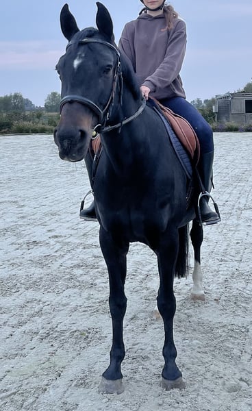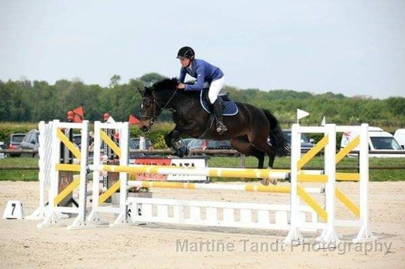 A lovely family pony (by Voltaire) seeking a 5-star 🏡. She is 16 years old. She joined us as a yearling. At 3 years old, she was approved by RX 🩻✅. She was saddle-trained at 4 years old. Since then, I have competed with her in show jumping. She jumps very consistently, with many placements in 90/1m classes 🏅. She has also competed in courses up to 1.15m among other horses, due to my age, but you can notice that the distances in double combinations can be a bit more challenging. (Oxer to vertical was no problem, vertical to oxer was more difficult). She is very reliable and never takes a wrong step. She is also 100% traffic-safe. Going for walks (forest, beach, road) she loves! 🤩 She fully adapts to her rider. A nervous rider gains her confidence, while a competition rider can count on her energy to win. She has no issues with clipping or transport. She has given us three foals, the youngest of which will arrive in 2026. She passes on her character and ability to her offspring. The oldest foal has been sold to the Netherlands. We still have the 2nd and 3rd foal in our possession (see last photos). She is located in Belgium 🇧🇪.