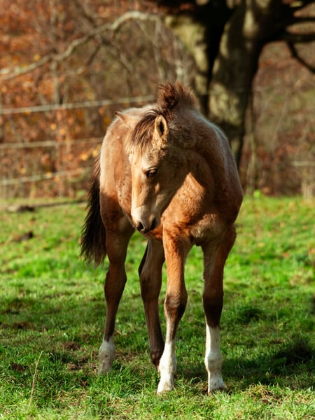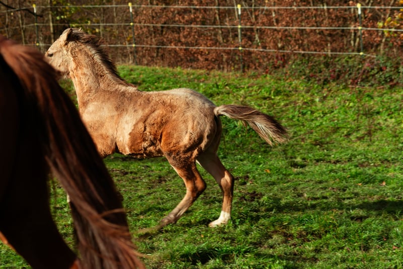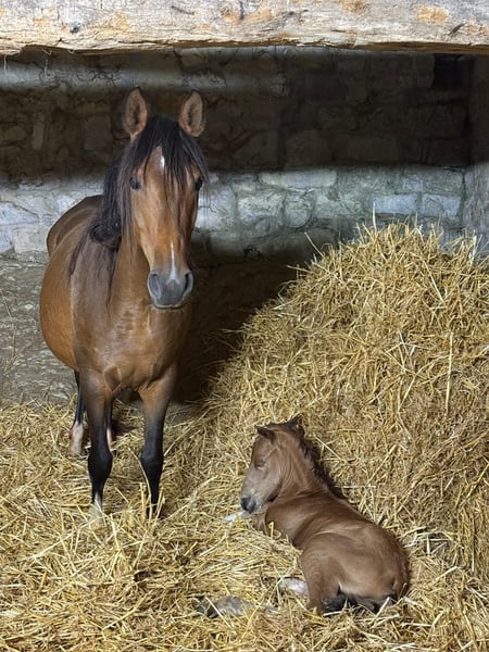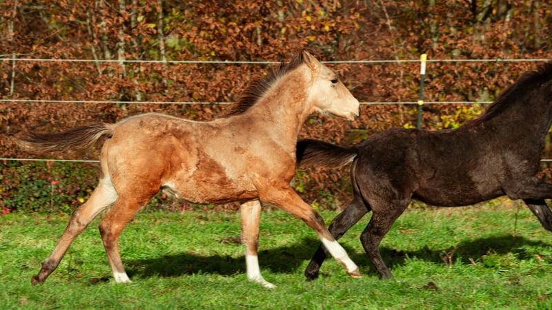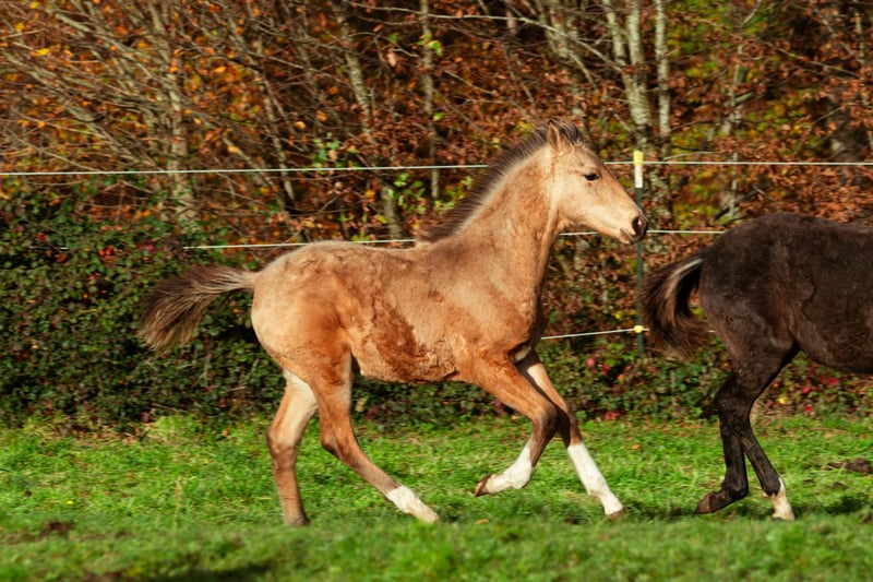 Pantao embodies all the virtues of the Berber horse in an exceptional quality. Both inside and out, he shines. Despite his strong build and his impressive size—especially for a late-born foal—he offers all the advantages of his distinguished ancestors. He carries bloodlines from the Maghreb, combining performance-oriented lineages from many renowned past breeding programs. His pedigree includes Algerian bloodlines and Moroccan refinement, all rooted in one of the finest Tunisian mare lines of the last century. The percentages of Arabian blood mentioned are for reference only—one can easily see for themselves in every gait ;) Extremely compact, almost perfectly conformed, quick off the ground, elastic, yet with the necessary tonus: this is not just empty words about Berber horses. Daily, he proves this in his playful interactions with a stately foal herd—often too fast for the camera! Even in gallop, he remains balanced and agile thanks to his upright posture and strong hindquarters. Pantao is destined to be a future golden buckskin for dynamic endeavors—lovable and affectionate like all his ancestors—and at the same time driven and light-footed enough to turn half a meter tighter, to be a little faster, and to play with older horses in a lovable yet confident manner. In short, anyone with big plans and a desire to give this mighty Berber colt the time he needs will find a loyal companion here. These bloodlines are proven, durable, and the result of multiple generations of riding horse selection, from young riders to advanced levels. Few foals of this quality and size are as dynamic and yet gentle as Pantao. We wish for Pantao al Nuri to be in responsible hands as a representative of a now endangered breed of Maghrebian horses—meaningful to his human and his family—not merely valued for his rare color, but admired for the exceptional qualities that Berber horses have exemplified for centuries. Please contact us personally if you are interested in getting to know Pantao carefully.
