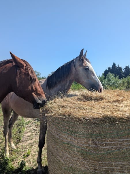 Poulain barbe au mental exceptionnel. D'une grande douceur et extrêmement facile en tout. Très bien éduqué, marche en main, promenade, franchissement de dispositifs et d'embûches, embarque et voyage sereinement etc. Très belle morphologie très équilibrée, belle locomotion. Toise 1m50 à 18 mois, devrait faire 1m55