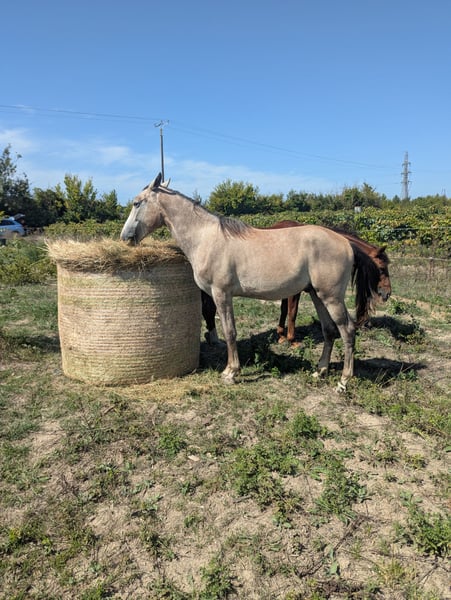 Fohlen mit außergewöhnlichem Charakter. Sehr sanft und in allem äußerst unkompliziert. Sehr gut erzogen, führt an der Hand, Spaziergänge, Überwinden von Hindernissen und schwierigen Passagen, ruhiges Ein- und Aussteigen sowie Reisen. Sehr schöne, ausgewogene Erscheinung, elegante Bewegung. Misst 1,50 m mit 18 Monaten, wird voraussichtlich 1,55 m erreichen.