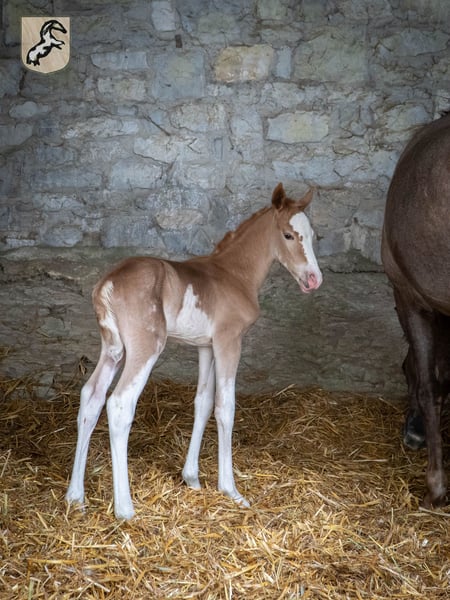 LAHBIB Ivoorkust, *23.05.2021 01:50. Onze kleine "volbloed met room" ... een veulen geassocieerd met veel emoties! Een van de weinige, zwaar gevlekte kinderen van Joudran Chaouachoua (oorspronkelijke import van de Algerijnse Nationale Stoeterij, op dekhengst bij de stoeterij AL MANSOUR), die oud Maghreb-bloed over zijn moeder- en vaderlijke kant draagt. Bovendien gaven zijn voorouders hem een bijzonder creatief uiterlijk - en vanaf de eerste dag vult hij deze buitenkanten met zijn geestige, ruimdenkende karakter. Kortom, er is nauwelijks iets dat Lahbib's nieuwsgierigheid NIET wekt of zelfs bang maakt! Naast zijn plezier in hardlopen, spreekt dit vooral voor een buitengewone metgezel in trailritten of eventingtoernooien. Lahbib heeft een zachtaardige maar consistente tweevoeter nodig die erin slaagt om de bundel energie en zijn onlesbare honger naar avontuur liefdevol te temmen. Berber met 18,75% OX-gehalte, hengstveulens. Door Joudran Chaouachoua [Rohil B x Labada B v. Oggaz] uit de Najla de Tuilière [Keegan AB x HAMIRA DE FOUGERE AB v. ASTERIX B]