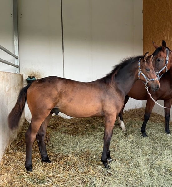Urocza klacz hodowlana od Quatermana/Rohdiamant, obecnie w ciąży z Diamantenglanz, na sprzedaż. Ma na koncie dwa źrebięta: rocznego ogiera od Morricone, jedno źrebię od For Romance oraz obecne źrebię od Diamantenglanz, widoczne na zdjęciach w tej kolejności. Klacz nie nadaje się już do jazdy. Może służyć wyłącznie do hodowli lub jako koń towarzyszący. Obecnie ma jeszcze źrebię Beifuß i będzie dostępna dopiero po odsadzeniu, jesienią.