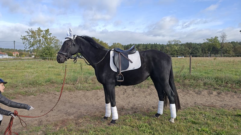 5 jährige Rappstute von Confess Color (Confess Color x Hohenstein - Depardieu) Einschränkungen: Hahnentritt ähnliche Symptome zeigt sich hinten beim Hufe auskratzen und Rückwärts richten, nicht bei der täglichen Arbeit unterm Sattel - 5 jährig, geboren 04/21 -direkt vom Züchter -artgerecht und liebevoll aufgezogen - Schmiede fromm - easy im handling, ruhiger Typ mit guten GGA - regelmäßig geimpft - regelmäßig entwurmt - geritten von Teenager, geht auch allein ins Gelände - kein Tausch, zur Verfügung stellen, Ratenzahlung etc. - aktuell 1,63m groß -Video kann verschickt werden Vhb 3800 Euro, Probereiten nach Absprache für 30 Euro die bei Kauf verrechnet werden - PLZ 14550 Es wird ein Für Immer zu Hause gesucht, am liebsten mit viel Weidegang und kleiner Herde, so wie sie groß geworden ist. Ich freue mich über ernstgemeinte Anfragen.