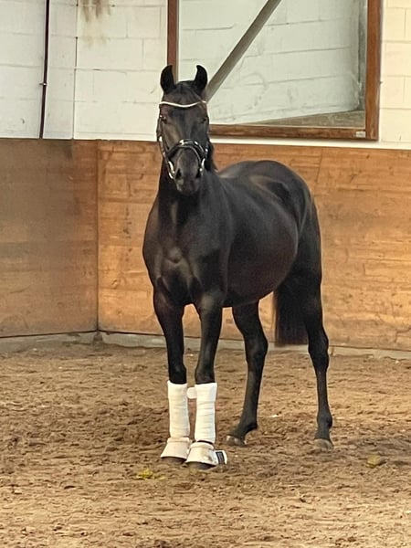 TI Feel Good 4 year old mare by Fürsten Look x Rubinero. Is still raw and stands in the open stable, about 1.58 m, very people-oriented and cuddly. Has a blemish, the back is slightly lowered / soft in the back. Is strong in motion and light-footed.
