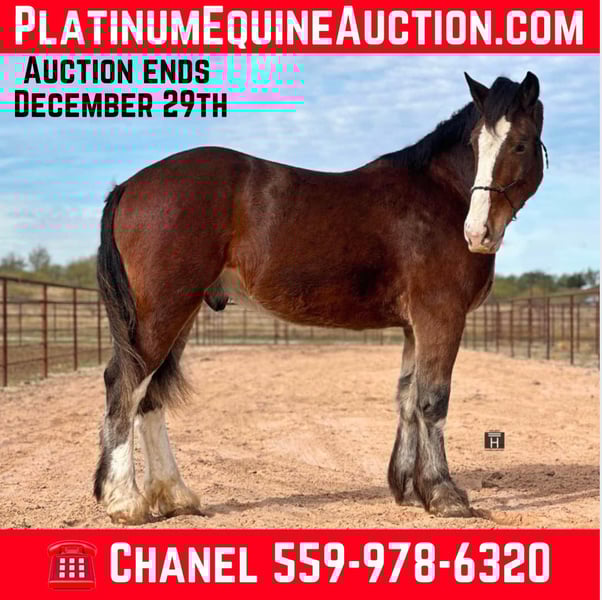 ONLINE AUCTION Place your bids at www.PlatinumEquineAuction.com Starting Bid $3500 Auction ends December 29th, 2024 Need a new saddle? Check out White Rock Saddles on our website or Facebook! Scooby Doo is the definition of a big puppy dog. Standing 16.3 and coming 4 years old, Scooby Doo is a saint of a gelding that is safe for everyone and multi versed in both Western and English riding as well as a solid driving horse for both cart and farm machinery. He is quiet, GENTLE and push button. He is the type of horse you can throw your inexperienced family member or friend on and he will babysit them. He is excellent out on the trails and loves to play in the water. He is a warrior alone or will cruise with others. He has beautiful gates and easy transitions both up and down. He is smooth and has nice circles and a great handle in the arena. We have lightly started him over fences and he has a ton of natural ability and is super easy. Scooby Doo will greet you at the gate every single time you walk outside. He genuinely loves attention, treats, being groomed, and going to do something. He is traffic safe and stands quietly at the mounting block. He is gentleman through and through. Scooby Doo is 100% sound and UTD. FMI call/text Holland Horse Company Chanel 559-978-6320. We are happy to answer questions, arrange a showing, and help arrange shipping nationwide. Located in Jacksboro, TX. ONLINE AUCTION Place your bids at www.PlatinumEquineAuction.com Starting Bid $3500 Auction ends December 29th, 2024 Need a new saddle? Check out White Rock Saddles on our website or Facebook!