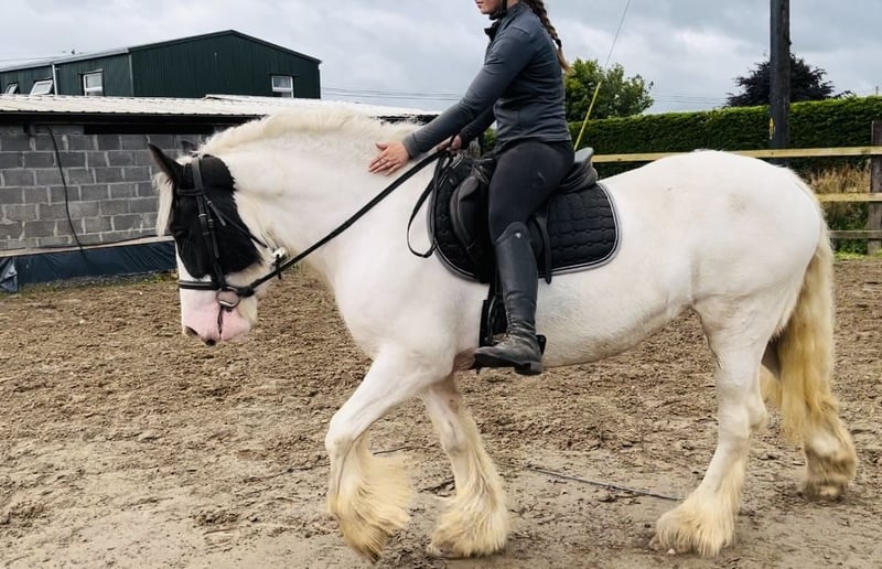 **Na sprzedaż: Oszałamiająca klacz Irish Cob** Poznaj Jill, naszą piękną klacz urodzoną w 2020 roku, o wzroście 153 cm (15hh). Jej urocza osobowość i łagodne usposobienie sprawiają, że jest idealnym towarzyszem dla jeźdźców na każdym poziomie. Niezależnie od tego, czy chcesz startować w zawodach, czy cieszyć się rekreacyjnymi jazdami, jest gotowa podjąć każde wyzwanie z entuzjazmem i wdziękiem. Dzięki swojemu unikalnemu ubarwieniu i atletycznej budowie na pewno przyciągnie spojrzenia wszędzie, gdzie się pojawi. Nie przegap okazji, aby uczynić tę wyjątkową klacz częścią swojej jeździeckiej podróży! Niezwykle odważna podczas treningów w terenie. Z łatwością pokona wszystkie rodzaje przeszkód. Skontaktuj się z nami, aby uzyskać więcej informacji i umówić się na wizytę. Twój następny koński partner czeka! Cena 6500 €. Zlokalizowana w Sligo, Irlandia. Regularny profesjonalny transport dostępny na życzenie. W celu uzyskania dalszych informacji lub filmów prosimy o kontakt z Edwardem pod numerem 00353871412129. Wszystkie zapytania są mile widziane!