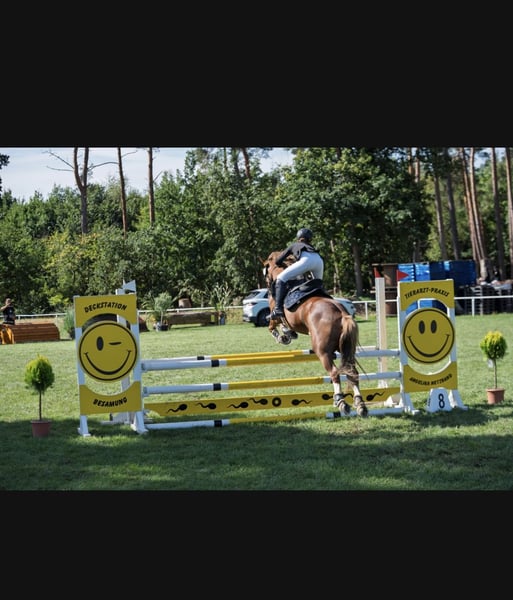 Liebenswerter Ponywallach sucht neues Zuhause, Schwerenherzens trennen sich die Wege von Buddy und seiner Reiterin nach über 3 Jahren, aufgrund eines Umstieges auf Großpferde. Buddy und seine Reiterin konnten sich auf ihrer langen Reise einige Erfolge im Springen und in der Dressur bis zur Klasse E sichern. Im Jahr 2025 folgte dann die „Umschulung“ zum Geländepferd und schnell zeigte sich: das ist Buddys Lieblingsdisziplin. Er läuft mit viel Freude durch den Geländeparcours, zieht immer auf die Sprünge an und er unterstützt den Reiter sehr gut, falls ein Sprung mal nicht so gut passt. Außerdem ging Buddy in 2024 seine ersten A Springen und fand auch dort seinen Spaß. Buddy ist ein sehr Charakterstarkes Pony, was dennoch für jeden Spaß wie Kostümspringen, Ausritte usw. zu haben ist. Er benimmt sich im Gelände sehr artig, ist Straßensicher, kennt Traktoren, bellende Hunde und hat keine Scheu neue Dinge kennenzulernen. Buddy ist ein Pony mit viel Go welches gut unterstützt werden sollte. Bei Interesse können Sie sich gerne bei uns melden!