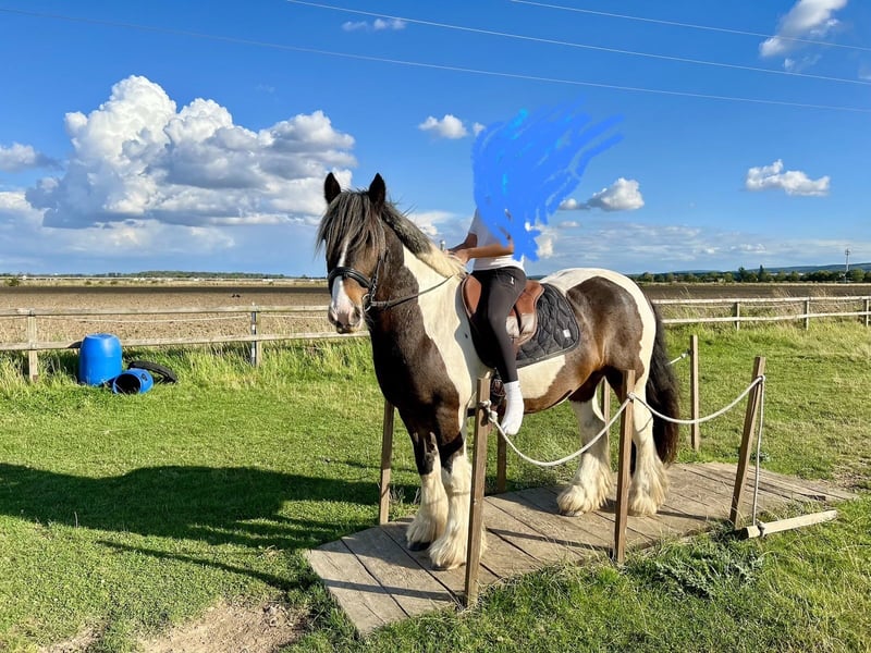 Gut gerittener, sportlicher, in Belgien gezogener Irish Cob, der die Lektionen der A-Dressur beherrscht, Trailarbeit, Horsemanship und Gelassenheitstraining kennt und sich sicher im Gelände bewegt. Er ist kein! Springpferd, bewältigt jedoch im Gelände kleinere Hindernisse. Bei Stallturnieren hat er sich erfolgreich in Dressur und Schritt-Trab-Pleasure vorgestellt. Er ist ein freundliches, ehrliches und zugewandtes Pferd, das nicht nur auf positive Erfahrungen mit Menschen zurückblickt und sich daher einen zuverlässigen, an ihm interessierten Partner wünscht, der Sicherheit und Vertrauen vermittelt und eine gute Pflege und faire Behandlung gewährleistet. Er bewegt sich sicher in gleich- und gemischtgeschlechtlichen Herden, ist sozial gut verträglich und problemlos integrierbar. Aktuell kann er sich mittels Schleusensystem frei zwischen Weide, Paddock und Box bewegen, ganzjährige Offenstallhaltung ist ihm ebenfalls vertraut. Er ist ein robustes und gesundes Pferd, das gerne in der Herde lebt; AKU mit Röntgen-Aufnahmen kann eingesehen werden. Als Kinderpferd ist er nicht geeignet, als Jugendpferd nur bedingt. Anfragen von Vereinen und Reitschulen sind daher nicht erwünscht. Proberitte sind möglich, hierfür fällt ein Entgelt von 30 Euro an, das ggf. mit dem Kaufpreis verrechnet wird. Der Wallach wird ausschließlich in private Hände abgegeben, wo Interesse an Förderung, zuverlässiger Pflege und Haltung im Herdenverband gewährleistet ist.