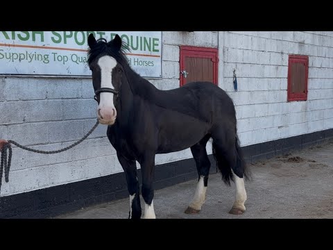 Pat: an easygoing, uncomplicated traditional Irish cob and ideal allrounder Pat is a 5yo, 14.2h black cob gelding with beautiful markings He has a quiet, mellow personality and is simple for anyone to ride. We believe Pat would best suit an amateur rider looking for an honest partner to do a bit of everything with, or a riding school as he is very consistent in his work ethic Pat is fantastic for hacking alone or in groups, he is comfortable and quiet around machinery, traffic, and cows He always goes in a snaffle and is not strong heading up to a jump Pat enjoys cross country jumping and is very honest and forgiving to rider errors or a bad distance Pat has no vices and is easy for anyone to handle, catch, load, shoe, tie, bathe, etc. He is open to any vetting Price includes delivery to UK exchange if you are not happy