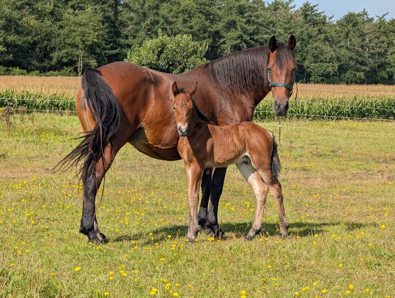 Twinstar Clover Mooie jonge hengst, die de beste vriend van de toekomst kan worden in de vrijetijdsport en als allrounder. Hij heeft veel mogelijkheden. Hij beheerst de basis van jonge paarden en wordt regelmatig door de hoefsmid verzorgd. Hij groeit op met leeftijdsgenootjes op de weiden van het stamboek. De derde foto is een actueel beeld; de donkerbruine hengst is zijn vader, Coolcom JJ. Voor meer informatie graag via WhatsApp/telefoon: 0049 160 4052656