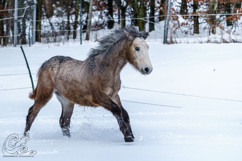 Oceanhearts Ventura is looking for a new home. He loves to please, adores people, and prefers to be right in the middle of the action rather than on the sidelines. Ventura was born and raised within the herd. He has a buddy with whom he enjoys playing and a caring aunt in his current weaning group. He is vaccinated, regularly wormed, chipped, and has good papers from ZfdP. His mother is Muckrim Josie by Westside Mirah, a mare, and his father is Birdmountain van Halen. He is expected to grow into a large, strong pony, likely surpassing pony size. For weaning, Ventura could stay with his buddy, but he will certainly settle quickly into a different group of foals. He is familiar with the basic foal training and always enjoys human contact. He even likes the veterinarian during vaccinations...