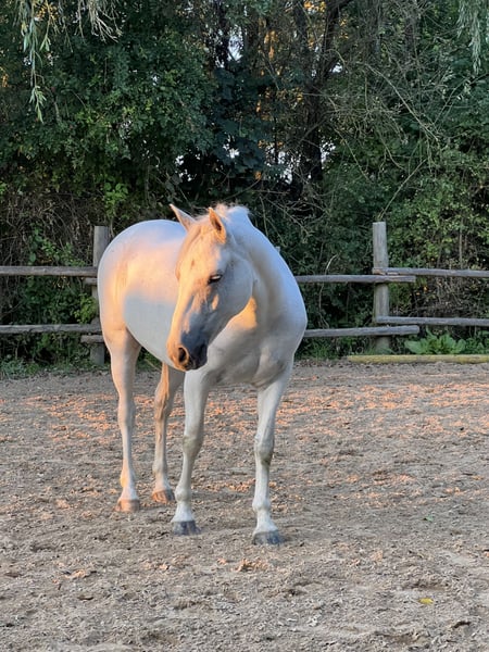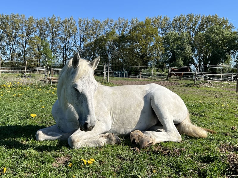 Schweren Herzens suche ich für meine liebe Stute Curlea ein neues, passendes Zuhause. Steckbrief: Rasse: Connemara Geschlecht: Stute Stockmaß: 147 cm Alter: 10 Jahre Farbe: Weiß Nutzung: Freizeit geritten Barhuf Ausstattung (bei Wunsch gegen Aufpreis übernehmbar): Angepasster Westernsattel Trense Decken Hufschuhe Halfter, Stricke Putzkasten Zu mir Curlea: Ich bin vom Händler direkt zu meiner Besitzerin gezogen und lebe seit her bei ihr. Leider kann sie aus finanziellen Gründen das nicht mehr stemmen. Ich bin sehr verschmust, liebe es gekrault zu werden und bin für jeden Spaß zu haben. Ich liebe es lange Spaziergänge oder Ausritte zu machen und übe gerne Zirkuslektionen. Langsam dürfen die Ponys gehen, ich halte sehr gut bei den großen mit und laufe auch gerne mal etwas schneller, triebig ist mir ein Fremdwort. Daher solltest du schon etwas Erfahrung haben und viel Spaß am Ausreiten mitbringen. Zusammengefasst: Wenn du auf der Suche nach einer treuen Freizeitpartnerin bist, die dich durchs Gelände trägt, Spaß an Ausritten hat und dir viel Freude bereitet, dann könnte Curlea genau die Richtige für dich sein. Curlea steht in der Nähe von Thedinghausen und kann gerne kennengelernt werden. Kontakt: schreib mich bitte einfach an und erzähl ein bisschen was über dich;) Keine Abgabe an Händler