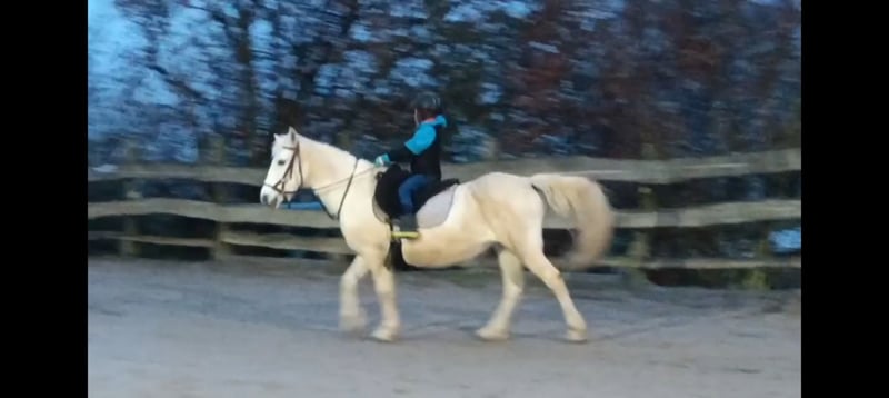 Ich verkaufe unsere 15 jährige (2010) Connemara Stute Bella. Sie ist 1,44m groß. Im Nov/Dez frisch entwurmt, geimpft, Hufe und Zähne gemacht. Lt Vorbesitzer hat sie die ersten Jahre in Irland als Zuchtstute gelebt, hat dann aber, als sie 2022 nach Deutschland kam, einen neuen Pass bekommen, ohne Abstammungsnachweis, daher kann ich dazu leider nichts sagen. Bella kam dieses Jahr im Februar zu uns, sie sollte für meine 7jährige Tochter und meinen kleinen Reitschulbetrieb eingesetzt werden. Was aber leider nur bedingt möglich ist. Bella wurde im letzten halben Jahr 5x die Woche im Schulbetrieb im Schritt mit kleinen Kindern geführt, oder mit den größeren auch frei im Schritt, Trab und Galopp in der Halle und auf dem Platz geritten und im Schritt auch im Gelände. Sie läuft mittlerweile bei mir ohne Eisen, kam aber vorne Beschlagen zu uns. Aufbrennen und Nageln findet sie überhaupt nicht gut, lässt es zwar tapfer über sich ergehen, hat aber wirklich starken Stress bei uns gezeigt, daher haben wir die Eisen abgelassen und ziehen ihr vorne im Gelände Hufschuhe an. Das klappt super und auf den Rasengittersteinen kommt sie bei uns auch gut ohne Eisen zurecht. Ausschneiden und Radpeln ist aber überhaupt kein Problem. Als wir sie geholt haben, ist sie anstandslos auf den Anhänger gegangen, hab ich hier danach nicht mehr geübt. Während der Fahrt stand sie ganz ruhig, war aber nass geschwitzt, als wir ankamen. Ich denke, dass sie diese ganzen Sachen einfach nicht kennt, da sie in Irland einfach 24/7 draußen war, mit wenig Menschenkontakt. Sie war anfangs auch noch recht scheu und geht auch heute noch ein paar Schritte weg, wenn jemand sie holen möchte. Mit ner Möhren in der Hand ist das aber gar kein Problem. Was Umweltreize angeht ist sie total unerschrocken, weshalb ich sie auch für den Schulbetrieb gekauft hatte. Kinder, Hunde, Autos, Trecker, Fahrräder, alles total egal. Im Gelände geht sie vorne oder hinten, alleine oder in der Gruppe. Sie klebt nicht, kann auch alleine bleiben, hat aber wenig Geduld, wenn sie mal länger irgendwo angebunden warten soll und scharrt dann leider. Und jetzt der Grund, warum wir sie abgeben möchten. Bella ist beim Reiten sehr sensibel. Mit einem entspannten Reiter, auch kleinen Kindern, ist der Schritt und Trab oder bei Fortgeschrittenen auch der Galopp, gut machbar. Sie ist zwar dressurmäßig nicht weit ausgebildet, aber für gemütliche Ausritte oder die Arbeit auf dem Platz/Halle ein absolutes Verlasspferd. Meine Tochter kann sie alleine über den Hof reiten oder auf dem Platz traben, über Stangen reiten oder durch den Geschicklichkeitsparcour. Kommt aber ein ängstlicher, klemmiger Reiter auf ihren Rücken, bekommt sie totalen Stress. Sie erschreckt sich vor dem Bein, bleibt nicht ruhig stehn, wird schnell und lässt sich dann auch nicht mehr entspannt mit dem Reiter drauf führen. Und genau das ist für den Reitunterricht weder für den Reiter noch fürs Pferd wünschenswert. Man merkt ihr bei diesen Kindern dann an, dass sie total überfordert ist. Mit ihrer Reitbeteiligung, meiner Tochter oder entspannten Kindern blüht sie förmlich auf, verzeiht kleiner Fehler und ist total motiviert. Auch an der Longe hatte ich schon einige Kinder im Schritt und Trab drauf sitzen. Das klappt auch gut, solange die Kinder ruhig und locker bleiben. Bella ist zwar recht flott, aber immer händelbar und nach Aussage der Kinder, sehr bequem im Trab zu sitzen. Da ich hauptsächlich Anfänger unterrichte und auch viele Kinder habe, die ängstlich sind, ist Bella im Schulbetrieb fehl am Platz und ich möchte dem Pferd das auch ersparen, mit Stress geritten zu werden. Vom Boden aus ist sie ein absoluter Schatz. Jeder Anfänger kann sie führen und Putzen. Manchmal stellt sie sich etwas sturr beim Umdrehen oder Hufe auskratzen, was einfach mit der fehlenden Routine bei Pferd und Reitschülern zu tun hat. Sie läuft brav an der Longe und liebt es spazieren zu gehen. Körperlich hat sie leider eine Einschränkung, da sie einen leichten Senkrücken hat, kann sie nicht mit Sattel geritten werden, da der drückt und sie ist dadurch auch kein Gewichtsträger. Bei mir reiten nur kleine Kinder und Jugendliche, das ist kein Problem, ein leichter Erwachsener kann sich bestimmt auch drauf setzten, haben wir aber hier nicht getestet. Sie wird nur mit Pad geritten und gebisslos. Sie hatte zwar schon Trensen im Maul, aber da spielt sie viel mit der Zunge, auch hier vermute ich, das sie es einfach nicht kennt. Ausgebunden longiere klappt auch, aber nicht mit Reiter auf dem Rücken. Sie hat noch immer einen sehr starken Unterhals und eine schwache Rücken- und Bauchmuskelatur, da steckt noch etwas Aufbautraining drin. Aber die leichten Kinder/Jugendliche trägt sie ohne Probleme. Ansonsten hat sie bei mir keinen Krankheiten oder Allergien gezeigt und mir ist von der Vorbesitzer nichts bekannt. Sie wurde vom Vorbesitzer verkauft, weil sie dort von der kleinen Herde nicht in Ruhe gelassen wurde, kam nicht ans Futter und musste separat gestellt werden,was natürlich so nicht gewollt war. Bei uns steht Bella in einer offenen Box mit Paddock, zusammen mit 3 weiteren Ponys, was nach einer kurzen Eingewöhnungszeit, problemlos funktioniert. Sie ist in der Rangfolge im guten Mittelfeld. Im Sommer war sie tagsüber auf der Weide, jetzt im Winter stehen die Pferde am Tag auf Paddocks mit Heuraufen. Zusätzlich zum täglichen Unterricht, lass ich sie nur alle 2-3Tage laufen, ansonsten ist sie auch mit weniger Bewegung im Winter sehr ausgeglichen. Sie kennt Boxenhaltung, Stoh- oder Spähneeinsteu, kann Heu oder Heulage fressen und bekommt nur ein paar Krümelchen Müsli, damit sie ihr Mineral frisst. Sie ist eher der schlanke Typ und bekommt bei uns reichlich Heu und jetzt im Winter 1x pro Woche Mash und jeden Tag ein paar Möhren. Mit Äpfel muss man ihr nicht kommen, die mag sie nicht. Bella wurde bei uns Herpes, Influenza, Tetanus und Tollwut geimpft. Im November, August und Mai e