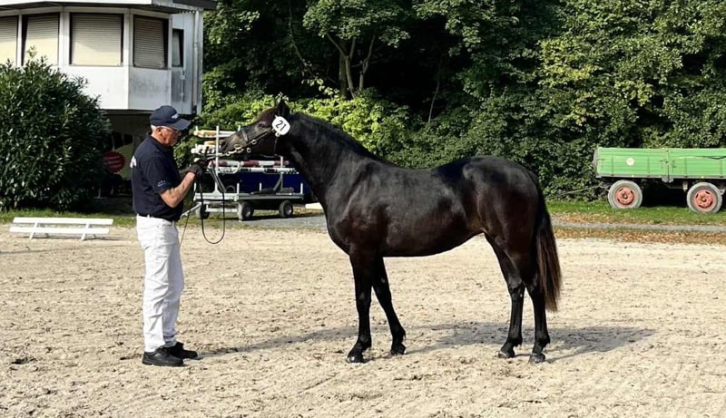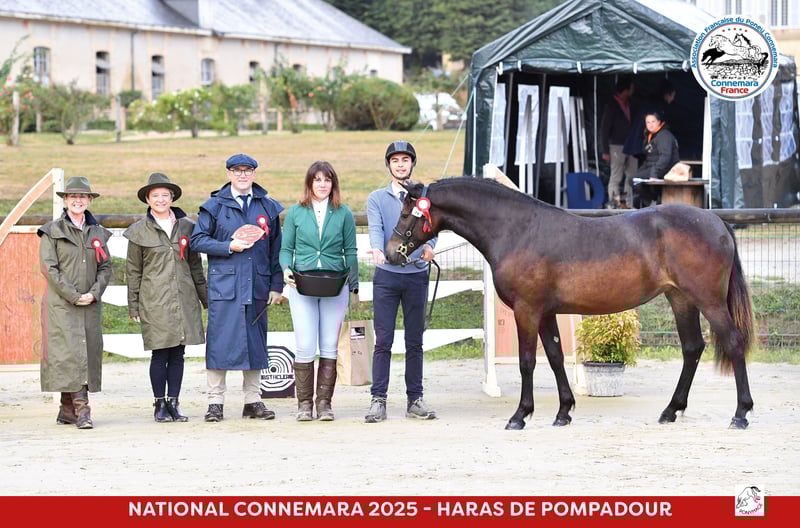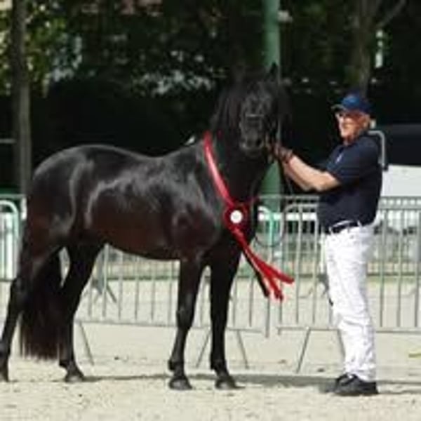 For sale: Connemara purebred filly, black pangaré, 1 year old. OPRAH des ZERAILLES. Sire: LUCIFER DES ZERAILLES (HARINGTON DE LA FAYE x SUN STAR SCHUERACHER) Dam: COQUINE (ECHO DE LA SCARPE) HWSD N/N by parentage. Expected to grow to a large D height. Well-handled, travels very well. Gentle and well-mannered. At just 1 year old, she participated in four breed and movement competitions: - Regional at ROSIERES AUX SALINES: won her class of 1-year-old fillies and earned the title of Reserve Junior Female Champion. - Inter-Regional at DIJON: OPRAH won her class of 1-year-old fillies. - National at POMPADOUR: won her class of 1-year-olds and was crowned Junior Female Champion. - International at WICRATH in Germany: 3rd place in the 1-year-old fillies class. Up-to-date on all vaccinations and deworming. Available for sale, transportation possible.