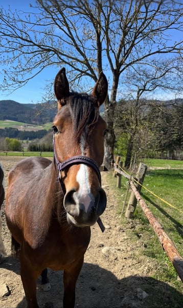 ✨ Samira – jument Pinto-Arabe x Connemara affectueuse cherche son foyer pour toujours ✨ Notre jolie Samira, née le 30.04.2023, cherche dès maintenant un nouveau foyer aimant. C'est une jument Pinto-Arabe x Connemara avec une taille actuelle d'environ 1,45 m au garrot et elle est encore dans son état brut. Samira se distingue par son caractère doux et sensible et se montre toujours ouverte et attentive envers les humains. Elle est curieuse, apprend vite et possède les meilleures conditions pour une formation future. Elle a été régulièrement vermifugée et a été présentée au maréchal-ferrant. Pendant l'été, elle a pu passer du temps avec des congénères dans les alpages. Un excellent cheval de loisir en perspective – pour quelqu'un qui aime éduquer une jeune jument avec patience et cœur. 📍 Localisation : Basse-Autriche, district de Melk 💰 2.5🥕🥕 ❤️ Un bon endroit est particulièrement important pour nous.