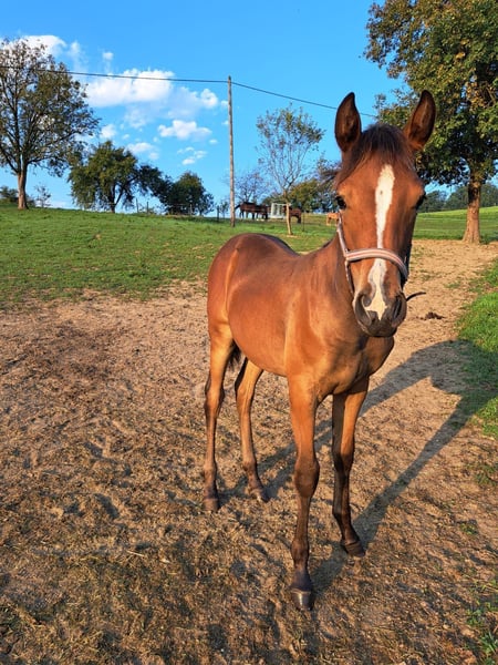 ✨ Samira – liebevolle Pinto-Araber x Connemara Jungstute sucht ihr Für-Immer-Zuhause ✨ Unsere hübsche Samira, geboren am 30.04.2023, sucht ab sofort ein neues, liebevolles Zuhause. Sie ist eine Pinto-Araber x Connemara-Stute mit aktuell ca. 1,45 m Stockmaß und befindet sich noch im Rohzustand. Samira überzeugt mit ihrem gutmütigen, feinfühligen Wesen und zeigt sich Menschen gegenüber stets offen und aufmerksam. Sie ist neugierig, lernt schnell und bringt beste Voraussetzungen für die weitere Ausbildung mit. Sie wurde regelmäßig entwurmt und dem Hufschmied vorgestellt. Den Sommer über durfte sie mit gleichaltrigen auf der Alm verbringen. Ein tolles Freizeitpferd in Aussicht – für jemanden, der Freude daran hat, eine junge Stute mit Geduld und Herz auszubilden. 📍 Standort: Niederösterreich, Bezirk Melk 💰2.5🥕🥕 ❤️ Ein guter Platz ist uns besonders wichtig