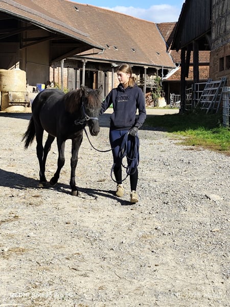 For Sale: Connemara Cross Mare – Perfect for Leisure and Hobby Riding! This beautiful black mare was born in 2024 and impresses with her friendly nature and versatile suitability. Standing at 14.7 hands, she is ideal for riders seeking a reliable and charming partner. She is well-suited for recreational riding and delights with her gentle demeanor and willingness to learn new things. If you are interested or would like more information, please feel free to contact me.