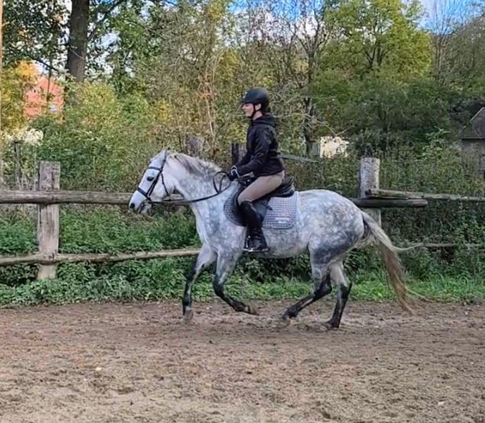 Connemara-Stute, geboren im Mai 2022, von Diamant 424 aus Skaergardens Spicy Love. Ihr hervorragendes Pedigree macht sie zu einer wertvollen Perspektive nicht nur für den Sport, sondern auch für die zukünftige Zucht. Als Fohlen wurde sie in einer sehr starken Klasse beim Connemara Pony Show 2022 in Straškov, Tschechische Republik, zum Fohlenchampion gekürt. Diamant 424 – Champion der 1. Tschechischen Connemara Pony Show 2019, mit nachgewiesener Leistung in allen drei Disziplinen (Dressur S, Springen T, Vielseitigkeit S) und bereits erfolgreichen Nachkommen sowohl im Sport als auch in der Zucht. Aktiv im Wettkampf und in der Zucht auch in Deutschland. Skaergardens Spicy Love – eine elegante Stute aus einer herausragenden dänischen Linie mit nachgewiesener Dressurleistung. Ihre Vollschwester ist Skaergardens Delicious Love - doppelte Gewinnerin von HOYS. Corri zeigt alle Qualitäten für den Sport: gesundes Selbstbewusstsein, exzellente Bewegung und natürliche Sprungfähigkeit, korrekte Konformation, freundlicher Charakter. • Sie ist regelmäßig geimpft, entwurmt und beschlagen. Bei uns gezüchtet und aufgezogen, befindet sie sich aktuell in den frühen Phasen der Anreitzeit. Corri ist angenehm vorwärts, vernünftig und wird voraussichtlich eine ausgezeichnete Partnerin für einen talentierten Reiter. Aktuelle Größe: 143 cm. Wir bieten dieses vielversprechende Fohlen nur in beste Bedingungen an.