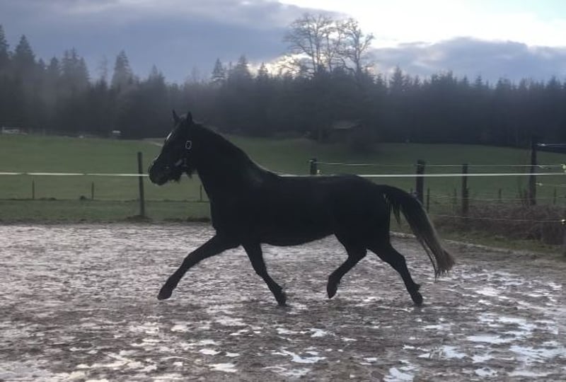 Connemara merrie, 3 jaar oud. In Duitsland opgegroeid, eindmaat pony