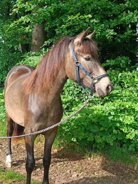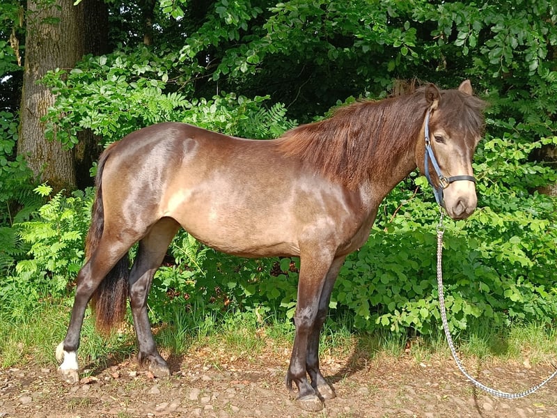 Zum Verkauf steht eine 2,5 jährige vielversprechende Connemara Stute ("Daylight", genannt "Duffy") mit hervorragenden raumgreifenden Gängen.