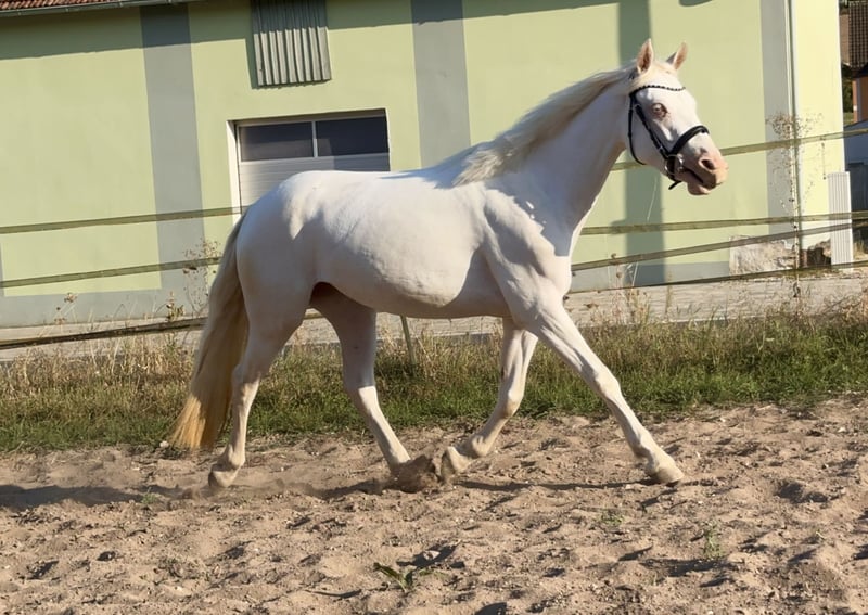 AZORES CASHEL AZORES CASHEL was born on 21.04.2021 in beautiful Ireland at Joe Burke one of the most renowned Connemara breeders in Ireland, she has a fantastic pedigree. Azores Cashel her HWSD status is N/ HWSD! At the moment Azores is 1,47 m we think she will be about 1,52 m! Her sire SHANBO RORY of the famous RORY RASPUTIN line paired with the very popular THUNDERBOLT blood and CARNA BOBBY blood! The dam MARA CASHEL also carries noble performance - show blood paired with the best jumping blood in her genes! DRUMBAD FLETCHER MOSS Her sire is descended from the famous FREDERIKSMINDE HAZY MATCH. CURRACHMORE CASHEL, OISIN, CUCHULAINN, BRIDGE BOY and many other interesting bloodlines are in our Azores Cashel. Completely ABBEYLEIX OWEN free ! Azores Cashel is a beautiful light Cremello young mare (BEC) with a very gentle and lovable character and very people-oriented and eager to learn! Azores Cashel has very good nerves and is now road and traffic safe for her age! Has no fear of large vehicles and machines! Drives trucks and horse transporters, is well-behaved at the vet and farrier, but still has problems giving his hooves to the farrier for a long time due to his growth behind! Scratching out hooves works well though! Azores Cashel is fully vaccinated with tetanus, equine influenza and EHV1,4 and can therefore move to any stable! Azores Cashel has very good hooves and is currently still living in the mares' young horse stable. Azores Cashel knows ground work, free jumping, free work in the round pen, lunging with a cap fence, pole work and walks outside! Due to her development, she has not yet been broken in as she is currently growing. Azores Cashel has 3 very good basic gaits with good ground coverage and rhythmic purity paired with very good jumping ability! Due to her size and growth, she is an ideal horse for someone who wants to acquire a good horse and wants to start riding late in the winter or next spring or ideally even later! Azores Cashel is a very socially acceptable, lovable mare who will fit into any herd! Azores complete pedigree can be found here under documents, as Ehorses likes to swallow parts of the pedigree. Azores currently lives in a mixed-age herd of mares in a loose stable! We charge an introductory fee of €70 on Sundays and public holidays and €50 on weekdays for each visit to our farm. This includes a maximum of 3 horses for viewing. The introductory fee must be paid in advance on arrival and refunded on purchase! If you like Azores Cashel, please contact us directly at the numbers given in the advertisement and include your full name and mobile phone number in an email - you are also welcome to contact us directly via Whatsapp at 00491713415878, in our beautiful village mobile telephony unfortunately does not work or only very poorly! Thank you for your interest! Your Lisbergs Stud - Lisbergs is always worth a visit - Stay fit and healthy Lisbergs Stud Farm