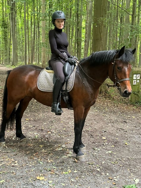 Hilltop Una ist eine 5-jährige Connemara-Stute von 1,46 m. Sie ist kräftig und breit gebaut, wodurch sie nicht nur ideal für Jugendliche, sondern auch perfekt für Erwachsene geeignet ist. 🐴 Charakter & Umgang Una hat einen goldenen Charakter: superlieb, anhänglich und immer bereit für neue Abenteuer. Sie geht gerne mit auf Ausflüge, ist brav im Wald und kann problemlos von jüngeren oder weniger erfahrenen Reitern geritten werden. 🏆 Sport & Vielseitigkeit Momentan springt sie flüssig Parcours von 80 cm im Wettkampf und hat definitiv das Potenzial, höher zu springen. Sie ist vielseitig einsetzbar: freizeitorientiert, sportlich oder als feine Familienpony. 📜 Zucht & Abstammung • Vollständig im Connemara-Stammbuch (Klasse 1, N/N) • Abstammung: Vater Maam Hero, bekannt für Nachkommen mit Springtalent, korrekten Gängen und fantastischem Charakter • Eine echte Perle zum Anschauen und genetisch sehr gut gezüchtet ✅ Gesundheit Am 19.09.2025 wurde Hilltop Una vollständig klinisch und röntgenologisch ohne Beanstandungen genehmigt. 🚛 Praktisch • Sie lässt sich super leicht transportieren • Kommt auf der Weide hervorragend mit anderen Ponys zurecht Mehr Infos? +32475682243 Für Videos fragen Sie gerne nach unserer Webseite.