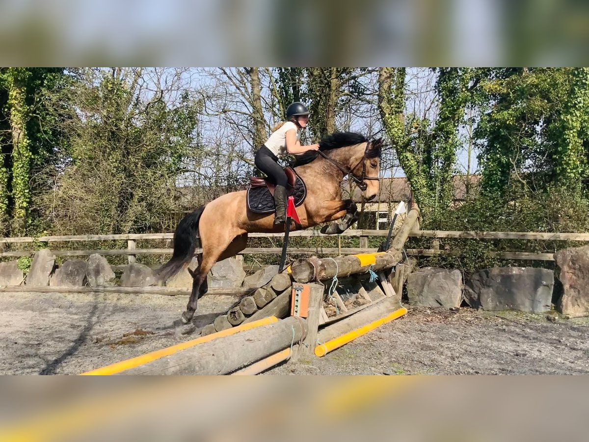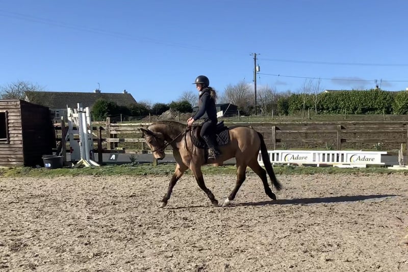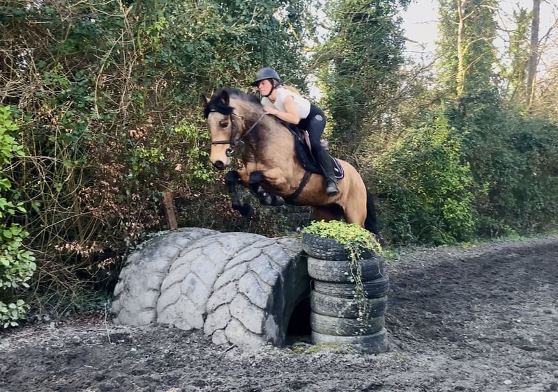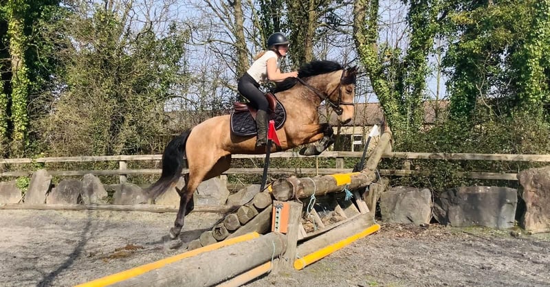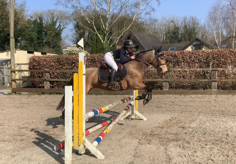 Max – future POYS/Europeans top track showjumping pony 🌟 With his shiny golden dun coat, fantastic scope, and professional education, Max has all the qualities of a young showjumping pony. He has proven himself to incredibly careful, athletic and honest. He has began unregistered showjumping competitions with us and behaves perfectly in crowded warm up rings, and jumps honestly in the ring He enjoys cross country schooling and remains very careful and brave to natural obstacles He has been hacking alone and in groups, and in open fields and remains focused and quiet He always rides in a loose ring snaffle and is very soft and easy to keep in the contact He has natural flying changes and is well balanced and rideable to a fence Max has jumped grids and gymnastic exercises and knows how to keep a steady rhythm throughout He is saintly to handle, he enjoys grooming and is easy to load, box, tie, shoe, etc. With his athletic nature and scope, he is best suited to a training program with small adult or experienced young person working with a coach to continue his education. Max is open to any vetting, he has no lumps, bumps, or vices Exchange if you are not happy, price includes delivery to your yard in the UK