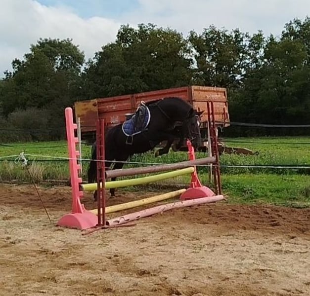 Louki de liaf , hongre connemara de 5 ans, 145 cms. poney gentil, très attachant, facile au quotidien. louki a de belle aptitude pour le saut ; énergique. débourré aux 3 allures , encore vert dans le travail . Pour cavalier allaise aux 3 allures et encadré. vidéo sur demande.