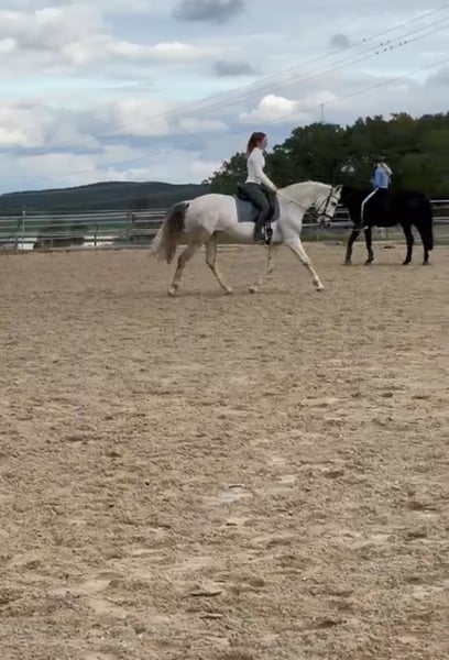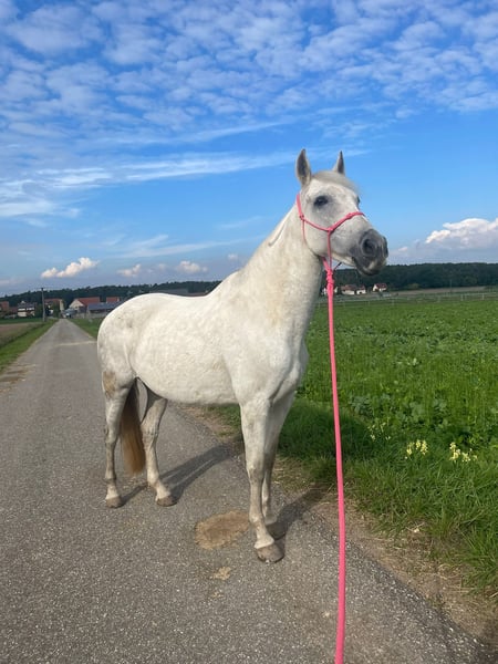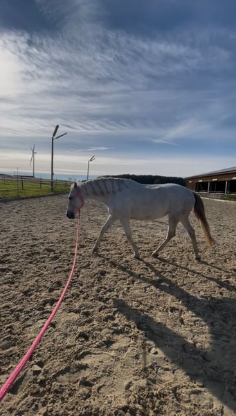 Hinwei: Leider gab es hier einen Fehler in der Anlage. Es ist eine STUTE kein Hengst. Ich kann es leider nicht ändern Platz vor Preis! Das neue Zuhause ist mir viel wichtiger - über das finanzielle wird man sich sicher einig. Sie ist beim reiten kein Anfängerpferd & hat sich beim Reiten jetzt eine Unart angewöhnt, die mit Können aber gut zu regeln ist. Kein Bocken oder Steigen. -> Näheres gerne per PN. (Wir denken, dass das von den Zähnen kommt - dort wo das Gebiss liegt, hat sie unterhalb zwei Wolfszähne unter dem Zahnfleisch, welche Ende der Woche noch entfernt werden.) Aufgrund persönlicher Umstände habe ich mich dazu entschieden meine 9-jährige Cruzado Stute abzugeben. Ich hoffe auf diesem Weg die Person zu finden, die sie so sehr verdient hat und sie zu schätzen weiß. Ihr Stockmaß liegt bei 1,58m und sie ist eher ein zierlicher Typ. Im Umgang ist sie wirklich unkompliziert und lässt sich wenig von Umweltreizen beeinflussen. Wenn man einmal ihr Herz gewonnen hat, geht sie mit einem überall hin, ist absolut cool und lässt sich nicht so leicht aus der Ruhe bringen. Anstatt wegzurennen, schaut sie sich gruselige Situationen lieber aus der Nähe an. Ich würde sie als ziemlich Nervenstark beschreiben. Hufschmied und Tierarzt können sie auch alleine behandeln, ohne dass man als Besitzer zwingend dabei sein muss. Derzeit läuft sie barhuf, kennt aber auch Vollbeschlag. Auch mit dem Scheren hat sie kein Problem. Luna kennt Boxenhaltung und auch das Leben im Offenstall. Wobei sich der eigene Rückzugsort für die Nacht bewährt hat. Sie ist absolut herdenverträglich und immer freundlich - sie geht Stress lieber aus dem Weg. Eine kleine, ruhige Herde könnte ich mir für sie aber auch in der Nacht vorstellen. Luna ist offen für die Bodenarbeit, für Longenarbeit, sie kennt Doppellonge, das spazieren gehen, das Reiten auf dem Platz & in der Halle und das ausreiten sowohl alleine als auch in der Gruppe. Zudem ist die Vorbesitzerin mit ihr auch Springstunden gegangen & wir haben sie zuletzt Freispringen lassen. Eigentlich ist sie für alles zu haben - auch Ausritte ohne Sattel oder Schrecktraining. Also rundum eigentlich ein Pferd zum Spaß haben! Luna liebt es betüddelt zu werden & im Mittelpunkt, am besten überall, zu stehen. Außerdem ist sie grundehrlich und dem Menschen ggü. niemals böswillig. Auch nach mehreren Stehtagen muss man keine Angst haben, dass sie „doof“ bzw. „überdreht“ wird. Sämtliches Zubehör kann mit erworben werden. Um Reittourismus vorzubeugen, werden fürs Probereiten 25€ verlangt, welche ggfs. mit dem Kaufpreis gegengerechnet werden.