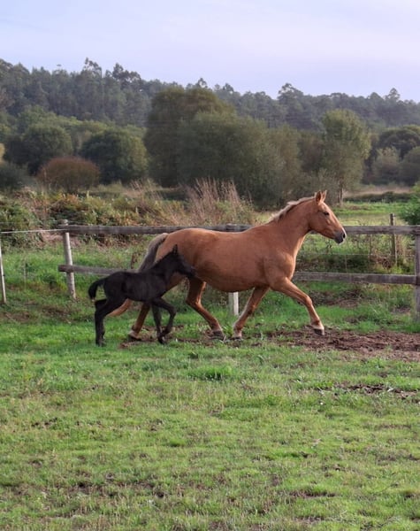 Sprzedam klacz o wspaniałym temperamencie, jeżdżoną z wysokiej klasy ćwiczeniami szkoły jazdy. Klacz jest w ciąży z młodym źrebięciem, które niedawno się urodziło. Rasy wyjątkowe, na zdjęciu ojciec – konik czarnej maści, czystej rasy hiszpańskiej.