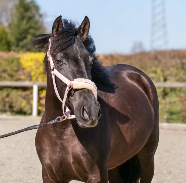 Name: Mora Rasse: Cruzado, Kreuzung Geschlecht: Stute Geburtsdatum: 10.1.2023 Alter: 3 Stockmaß: 1.50m Farbe: Rappe Abstammung: ohne Abstammungsnachweis Charakter: menschenbezogen, neugierig, intelligent, lernwillig, mutig, geduldig, gelassen, unglaublich liebes Jungpferd Ausbildung/Eignung: angeritten, longiert, Bodenarbeit, Dressur, Freizeit, Barock Geländeerfahrung: aufmerksam, nervenstark, zuverlässig, unerschrocken, alleine und in der Gruppe Gesundheit: entwurmt, geimpft, Barhufer, ekzemfrei, Zähne kontrolliert, osteopathisch behandelt Haltung: Box, Offenstall Besonderheiten: sehr sitzbequem, schmiede und verladefromm, herdenverträglich Die genannten Eigenschaften beruhen auf unserer persönlichen Einschätzung und stellen keine zugesicherten Merkmale dar. Preis: 6900 (Bruttopreis) Haben wir ihr Interesse geweckt? Um Ihnen einen besseren Eindruck von Mora zu geben, senden wir Ihnen sehr gerne Ihr Reitvideo zu. Selbstverständlich stehen wir Ihnen für eine ausführliche Beschreibung des Pferdes, persönliche Beratung und zur Beantwortung aller Ihrer Fragen auch telefonisch zur Verfügung. Bitte schreiben Sie uns hierfür jederzeit eine WhatsApp Nachricht, oder rufen unter folgender Telefonnummer an: +49 15119487595 Unsere Telefonzeiten sind täglich von 7:00 - 13:30 sowie ab 20:00Uhr. Wir freuen uns über Ihre Kontaktaufnahme! Eine klinische oder Röntgenologische Ankaufsuntersuchung kann gerne vom Tierarzt Ihrer Wahl durchgeführt werden. Natürlich kann Mora sicher und komfortabel in ihr neues Zuhause geliefert werden. Wir kümmern uns um alle notwendigen Vorbereitungen und den Transport, damit Ihr neues Pferd stressfrei, gut betreut, versichert und wohlbehalten im neuen Zuhause ankommt. Zurzeit präsentieren wir eine sorgfältig ausgewählte Vielfalt an Verkaufspferden. Bei uns finden Sie garantiert Ihr Traumpferd. Besuchen Sie uns auch gerne auf unserer Homepage unter: www.marvinsroyalhorses.de. Sehr geehrte Kunden, gerne stellen wir Ihnen unsere Pferde vor und führen, putzen, satteln, longieren, Bodenarbeit sowie Probereiten in der Reithalle, auf dem Platz oder im Gelände ist Ihnen möglich, um Ihr neues Familienmitglied näher kennenzulernen. Dieses kostet für ein Pferd 40€, für jedes weitere 30€ und wird beim Kauf wieder erstattet. Unsere Adresse lautet: Grube Ferdinand 50 53577 Neustadt Wied Google Maps: marvinsroyalhorses