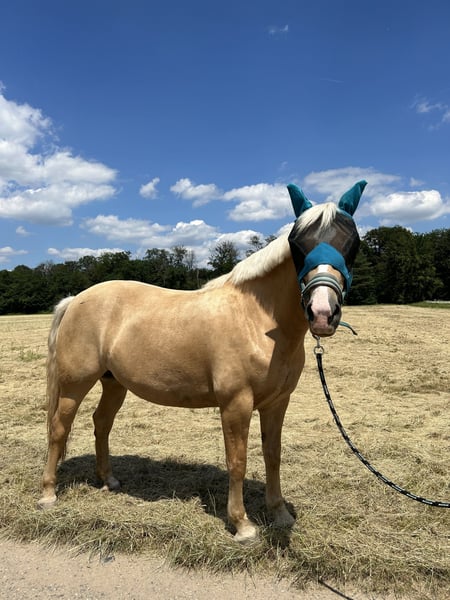 I am offering my 7-year-old (*July 10, 2018, in Spain) Cruzado mare (Lusitano x Merenzen), Dorada (nickname: Luana), in the color Pearl, for sale. She is being sold for personal reasons and this is not a distressed sale, so she will only go to a five-star home. General information about her: Luana has an approximate height of 15.5 hh and covers that range very well. She has a Spanish passport and came to Germany at around 2.5 years old, eventually finding her way to me. She is vaccinated against herpes and tetanus, and at the vet she is very straightforward and well-behaved. Luana is shod in front and also easygoing with the farrier. She is currently in a mare herd turnout. She is quite dominant but always fair and generally friendly towards other horses. I have also kept her in a box, which was no problem. Luana loads without any issues. She is also regularly dewormed. The small health check-up (AKU) two years ago, when I bought her, was clear. Aside from that, she has no known health problems (except that she is still a bit chubby). About her temperament: Luana has a curious and very friendly nature. She is very attentive to humans but needs time to fully trust her rider, so she usually bonds with one or two main handlers. Once trust is established, she gives her best and truly blossoms. She loves ground work, handwork, and lunging and works with great enthusiasm. She learns quickly from the ground as well as under saddle. She walks, trots, and canters in the arena. Most of the time, she is quite relaxed and needs a consistent rider to motivate her to move forward. Luana loves hacking out. When ridden alone, she is a very reliable partner (traffic-safe). In a group, she can sometimes be a bit energetic. She generally has no bad habits when ridden, such as bucking or rearing. She also loves to bathe and is always up for fun and playfulness. - Since she is still young and at the beginning of her training, I am looking for someone with experience, preferably also with young horse training, who can continue where we left off. I see her as the perfect leisure partner. She would also be suitable as a family horse, as she loves children. *Please note: These details are based on my perception.* She can be sold with full tack for an additional fee. I do not want her to go to a dealer or riding school!!! Videos available upon request. If you are genuinely interested, please send me a message or give me a call. Luana is looking forward to meeting you!