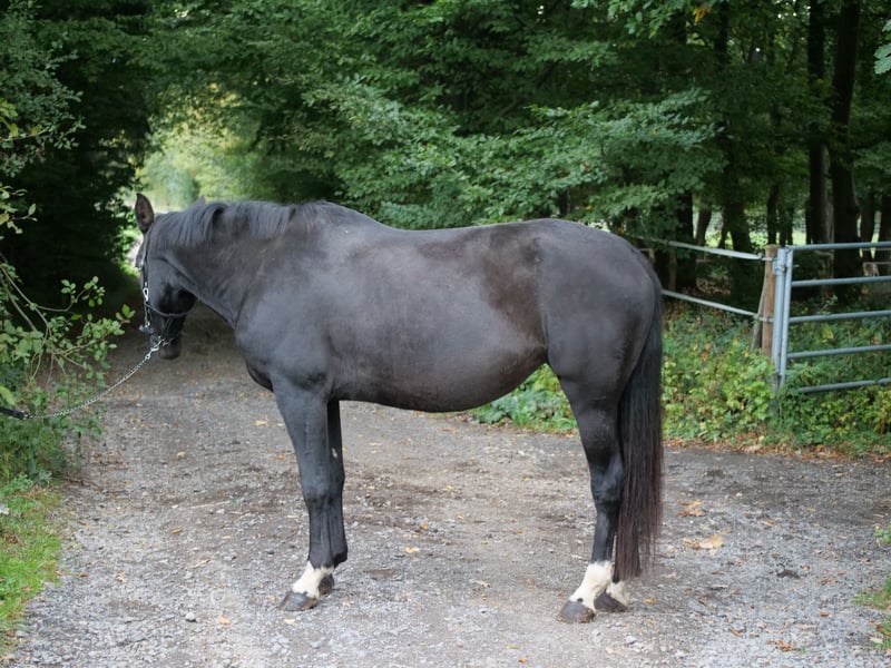 Beautiful Cruzado mare is looking for her family We are offering a charming Cruzado mare for sale. The elegant black mare was born in 2017 and has a height of 163 cm. She is ideal for active riders who want to grow with their horse and is excellent for trail rides, groundwork, and relaxing hours in nature. She has a good basic pace in walk, and her trot and canter are very well-mannered and absolutely smooth, making her comfortable to sit on. She is completely cool and fearless in the field, even alone without other horses. With us, she is ridden purely for leisure in the field. (No riding arena or indoor arena available) The mare is very well-behaved in handling and has a pleasant temperament. She lives with us in a paddock in a mixed herd and shows a mid-ranking position. We are happy to take care of the transportation to her new home for a fee or assist with the organization. If you are looking for a loyal companion for unforgettable adventures in nature, then this Cruzado mare could be just right for you! For interest or further questions, please call 015140790104. Viewings are possible by appointment.