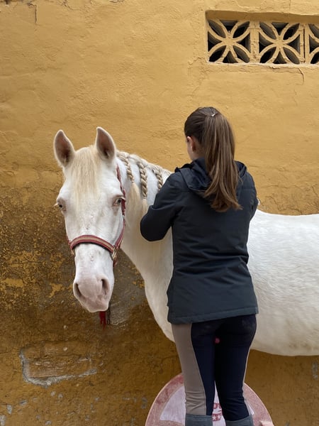 Caballo muy noble, sin manías ni vicios. Se lleva muy bien con los niños. Usado únicamente para paseos, puede salir tanto en grupo como solo y es muy amigable tanto con persona como con animales.