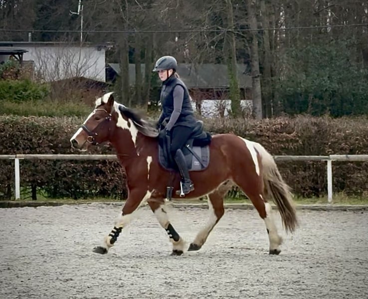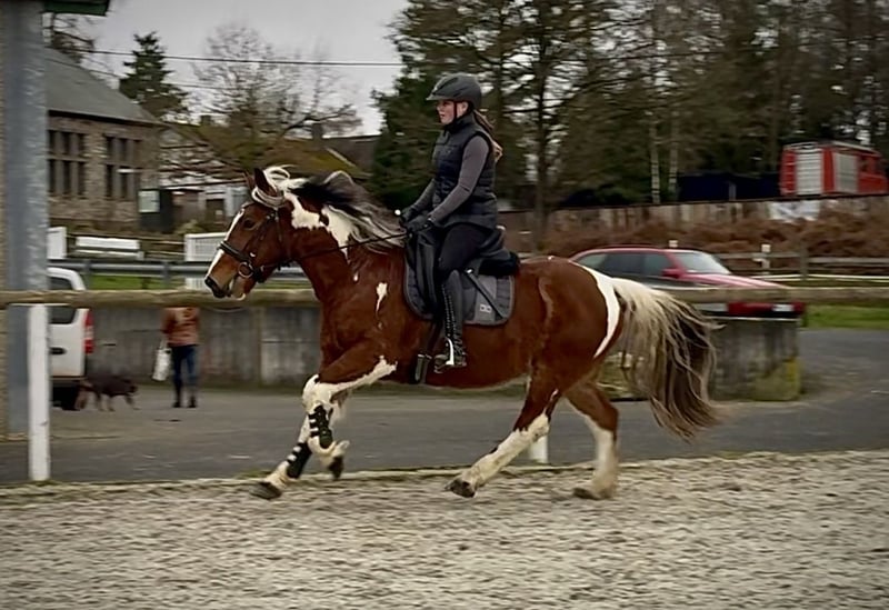Name: Pinto Rasse: Cruzado Geschlecht: Wallach Geburtsdatum: 17.04.2022 Alter: 3 Stockmaß: 1.40m Farbe: Schecke Abstammung: ohne Abstammungsnachweis Charakter: lernwillig, verlässlich, neugierig, intelligent, mutig Ausbildung/Eignung: geritten, Freizeit, Dressur, Springen Geländeerfahrung: zuverlässig, unerschrocken, nervenstark, alleine und in der Gruppe Gesundheit: entwurmt, geimpft, Barhufer, ekzemfrei, Zähne kontrolliert, ostheopatisch behandelt Haltung: Box, Offenstall Besonderheiten: sehr sitzbequem, schmiede und verladefromm, herdenverträglich Die genannten Eigenschaften beruhen auf unserer persönlichen Einschätzung und stellen keine zugesicherten Merkmale dar. Preis: 4900€ (Bruttopreis) Haben wir ihr Interesse geweckt? Um Ihnen einen besseren Eindruck von Pinto zu geben, senden wir Ihnen sehr gerne sein Reitvideo zu. Selbstverständlich stehen wir Ihnen für eine ausführliche Beschreibung des Pferdes, persönliche Beratung und zur Beantwortung aller Ihrer Fragen auch telefonisch zur Verfügung. Bitte schreiben Sie uns hierfür jederzeit eine WhatsApp Nachricht, oder rufen unter folgender Telefonnummer an: +49 15119487595 Unsere Telefonzeiten sind täglich von 7:00 - 13:30 sowie ab 20:00Uhr. Wir freuen uns über Ihre Kontaktaufnahme! Eine klinische oder Röntgenologische Ankaufsuntersuchung kann gerne vom Tierarzt Ihrer Wahl durchgeführt werden. Natürlich kann Pinto sicher und komfortabel in sein neues Zuhause geliefert werden. Wir kümmern uns um alle notwendigen Vorbereitungen und den Transport, damit Ihr neues Pferd stressfrei, gut betreut, versichert und wohlbehalten im neuen Zuhause ankommt. Zurzeit präsentieren wir eine sorgfältig ausgewählte Vielfalt an Verkaufspferden. Bei uns finden Sie garantiert Ihr Traumpferd. Besuchen Sie uns auch gerne auf unserer Homepage unter: www.marvinsroyalhorses.de. Sehr geehrte Kunden, gerne stellen wir Ihnen unsere Pferde vor und führen, putzen, satteln, longieren, Bodenarbeit sowie Probereiten in der Reithalle, auf dem Platz oder im Gelände ist Ihnen möglich, um Ihr neues Familienmitglied näher kennenzulernen. Dieses kostet für ein Pferd 40€, für jedes weitere 30€ und wird beim Kauf wieder erstattet. Unsere Adresse lautet: Grube Ferdinand 50 53577 Neustadt Wied Google Maps: marvinsroyalhorses