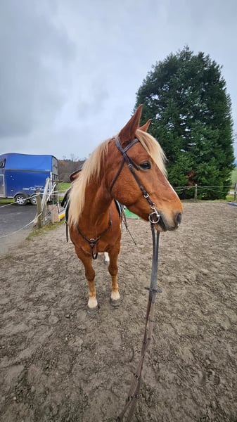 Freizeitwallach, 6.5 jährig, Cruzado Mix sucht neues liebevolles Zuhause 🍀 Standort: Wiesendangen TG (CH) Aufgrund persönlicher & familärer Umstände, suche ich für meinen Jung Wallach ein neues Zuhause. Zeus ist 6.5 jährig, 1.55m im Stockmass und läuft barhuf. Er wurde eher spät eingeritten und ist daher noch in seiner Lernphase. Er kennt die Grundbausteine unter dem Sattel wie sich vom Boden aus. Nun ist er bereit fpr die weitere Ausbildung. Zeus ist ein Cruzado, also ein Mix aus spanischen Rassen. Typengerecht hat er Power und ist auch eher sensibel. Ich würde Zeus als lieben, jedoch eigenständig denkenden Wallsch beschreiben. Er reagiert sensibel auf die Körpersprache, hinterfragt den Reiter und versicht trotzdem stets sein Bestes. Somit ist er ideal für den erfahrenen Freizeitreiter geeignet. Im Umgang ist er angenehm und weiss sich zu benehmen. Alterstypisch zeigt er sich manchmal verspielt, manchmal überdreht und manchmal frech. Er ist dem Menschen sehr zugeneigt und begrüsst seine(n) Menschen stets mit Freude. Ich habe ihn vielseitig vom Boden aus bewegt. Wir waren oft im Gelände, wie auch suf dem Platz. Geritten wurde er bis jetzt nur ca. 2mal wöchentlich. Dies jedoch abwechselnd auf dem Platz oder im Gelände. Vom Boden aus ist Zeus sehr sicher und reagiert sehr schön auf kleinste Zeichen. Auch Freiarbeit mag er gerne. Geritten ist Zeus noch etwas unsicher, da braucht er einfach noch mehr Übung und Routine. Jedoch ist er stets händelbar, wenn auch mal kleine Hüpfer kommen. Zeus kennt sowohl Offenstallhaltung, wie auch Boxenhaltung. Er ist unkompliziert in der Haltung und passt sich rasch an neue Umgebungen an. Er ist eher mittel im Rang, daher sollte eine gute Eingliederung in eine Gruppenhaltung erfolgen. Ansunsten ist er kerngesund und ein munteres Kerlchen. Er kann gerne jederzeit besucht werden, probegeritten und kennengelernt werden. Aufgrund meiner familären Umstände muss ich für ihn leider ein neues Zuhause suchen. Dies mache ich mit Tränen in den Augen. Daher ist mir ein gutes Zuhause sehr wichtig. Es gilt daher Platz vor Preis!